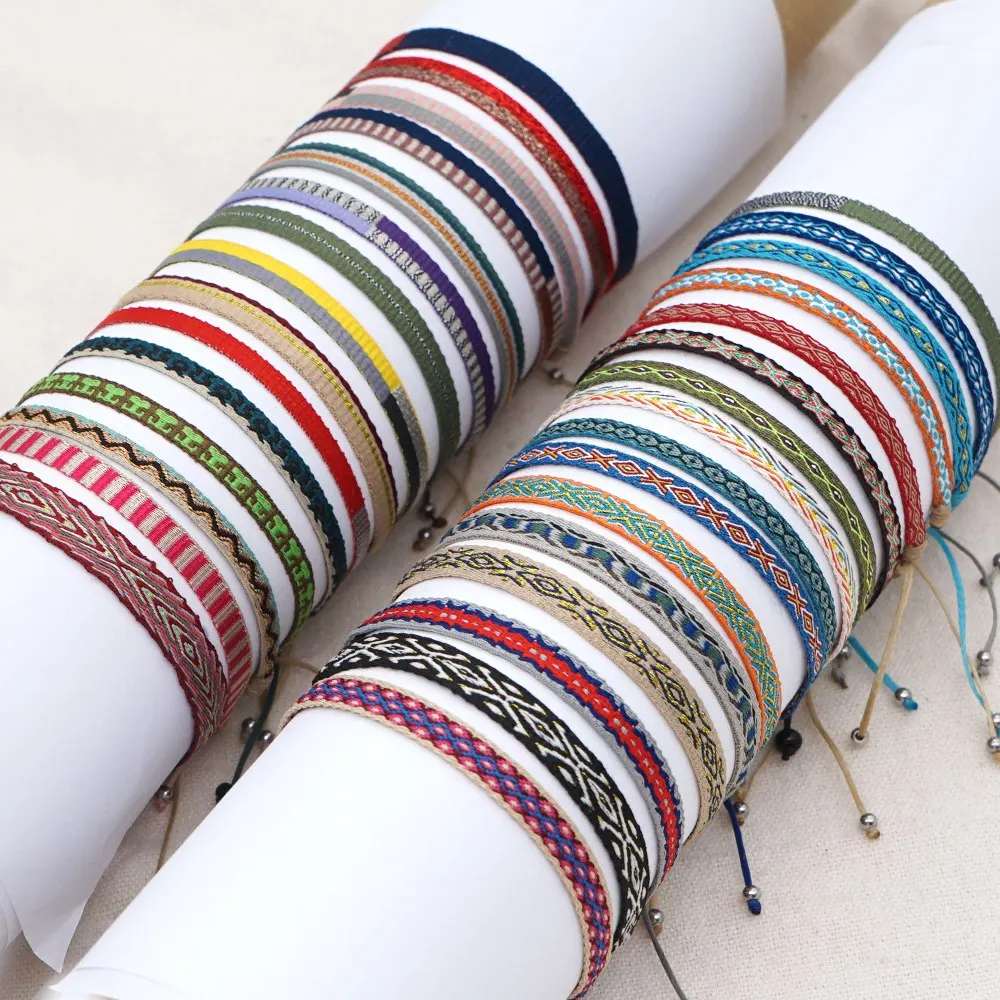 Женский плетеный браслет Go2Boho, винтажный тканевый браслет в богемном стиле с узором для друзей