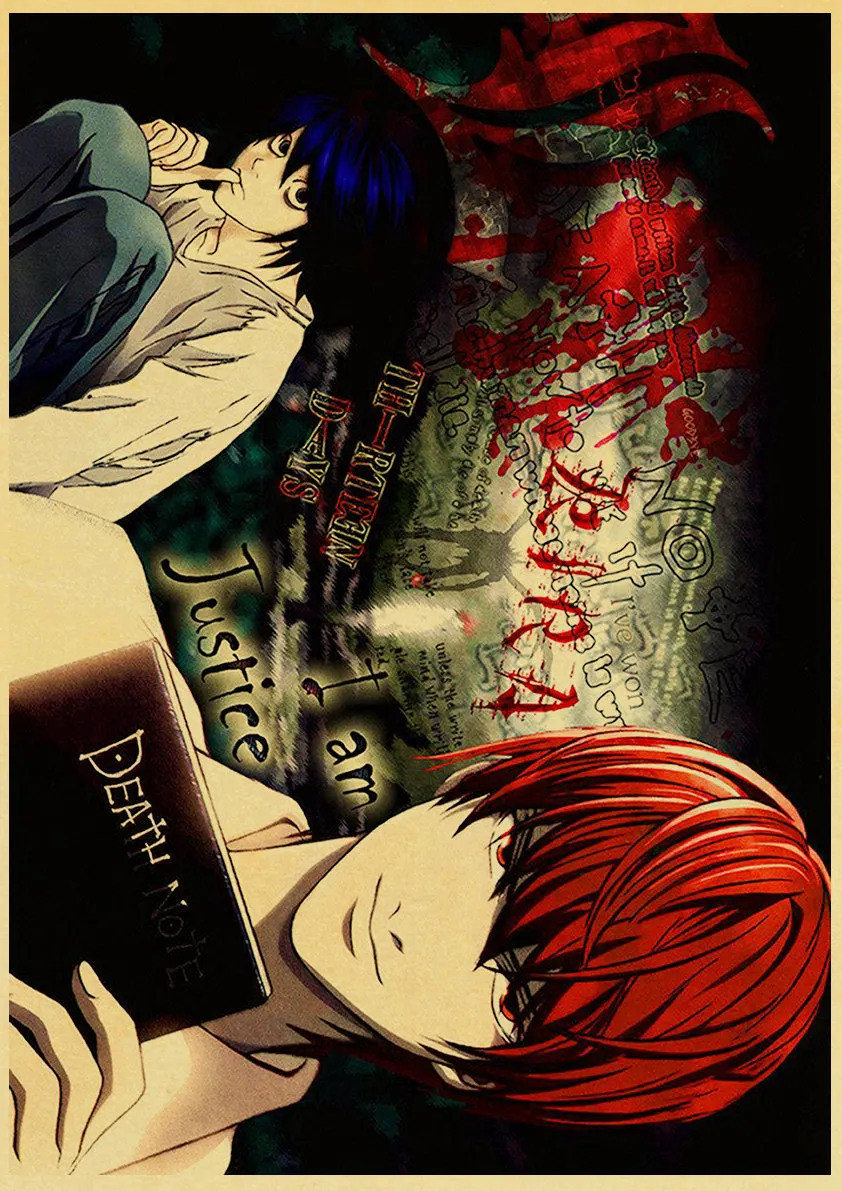 Постеры Классические в стиле японского аниме тетрадь смерти, ретро художественные постеры из крафт-бумаги для домашнего декоракомнатыбара, наклейки на стену