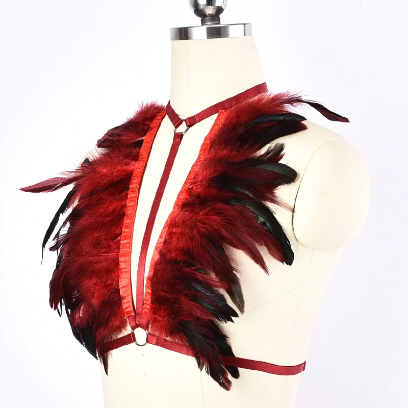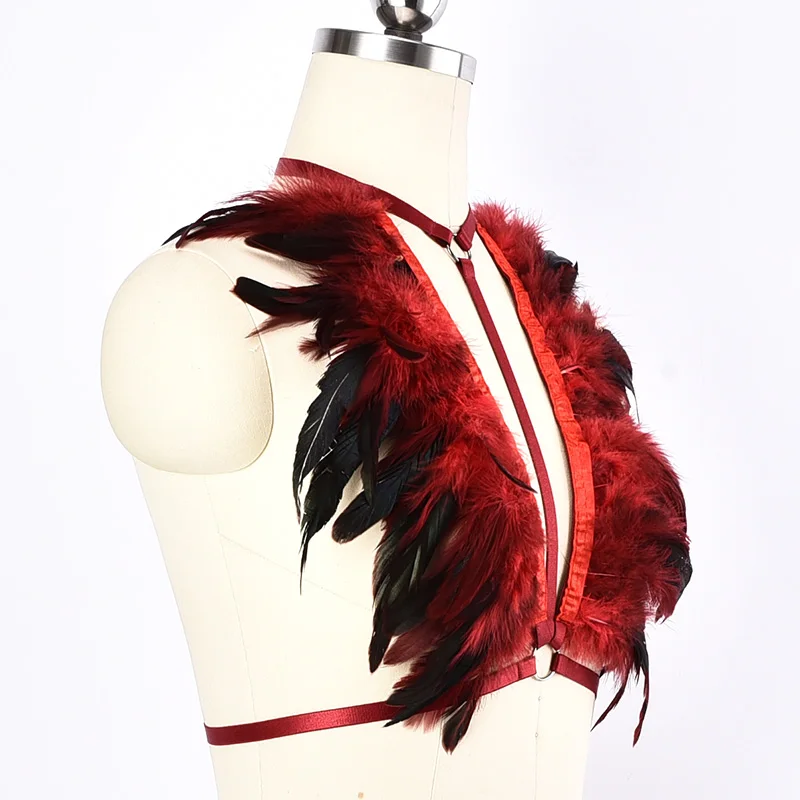 Epaulette жилет фестиваль винно-красные перья жгут костюм сжигающий человек плечи крылья Жгут Бюстгальтер унисекс Топ Холтер танец рейв