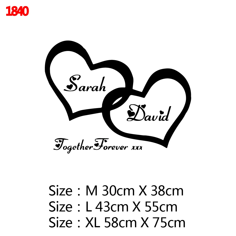 Пользовательские имя влюбленных стикер на стену для спальни декор г...
