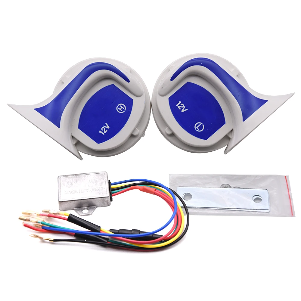 Материал: АБС-пластикЦвет: синий и белыйУровень звука: 110 + 5 дБНапряжение: 12 ВЧастота: низкий 410 Гц и высокий 510 ГцПосылка включает в себя:2x рога2x скобы и винты1x реле контроллера