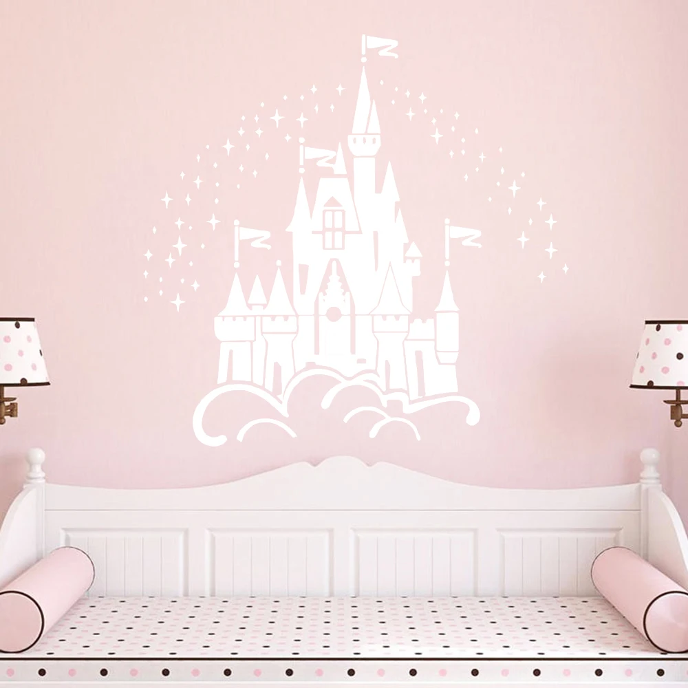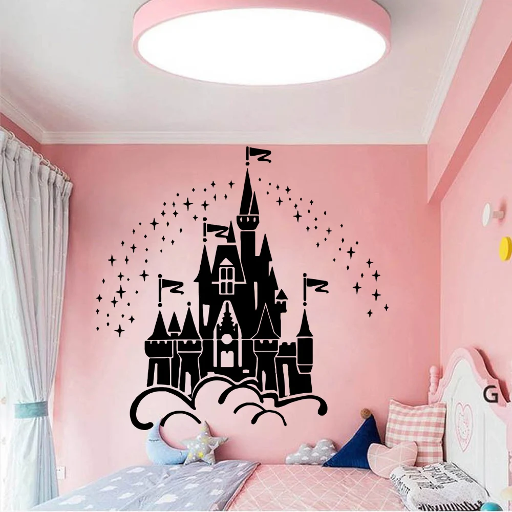 Мультяшный замок под звездами, наклейка на стену для девочек, декор для спальни, аксессуары для украшения детской комнаты, наклейки на стену, наклейки, фреска