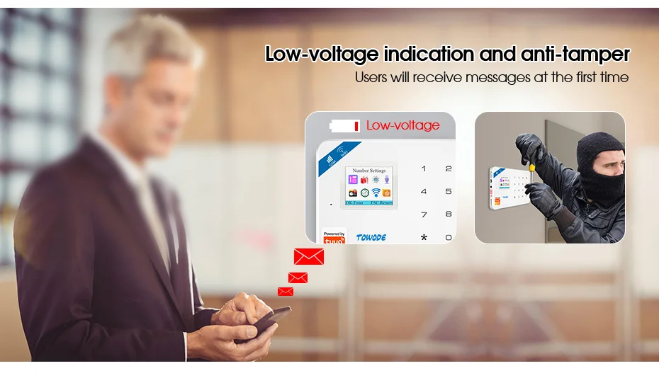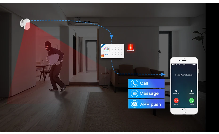 Эта система сигнализации Поддерживает пульт дистанционного управления tuya smart app, и это система сигнализации, которая может предотвратить воры, утечки газа, пожары в любое время, защитить безопасность вас и вашей семьи.