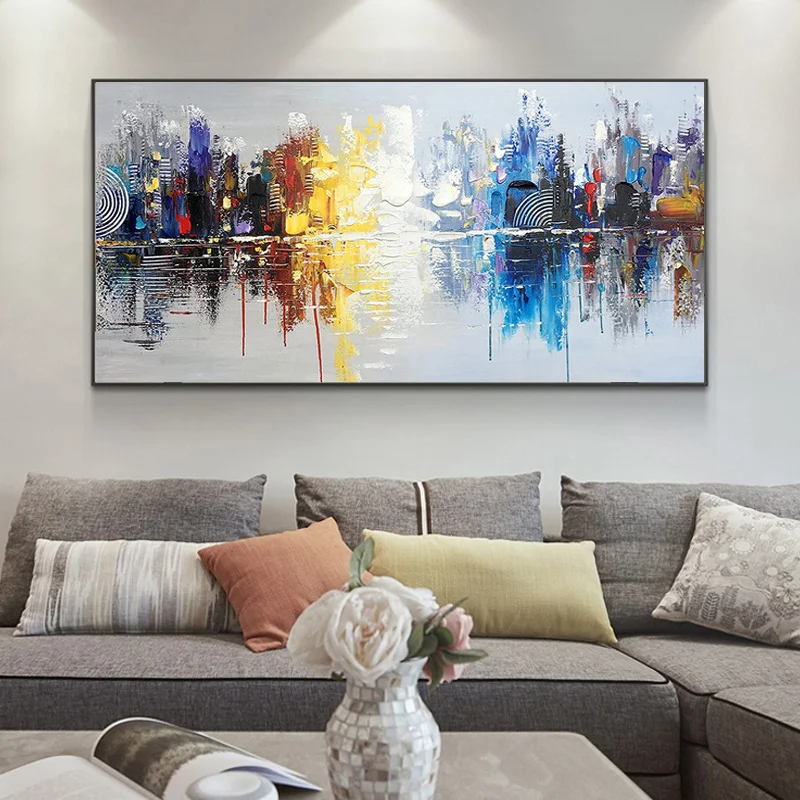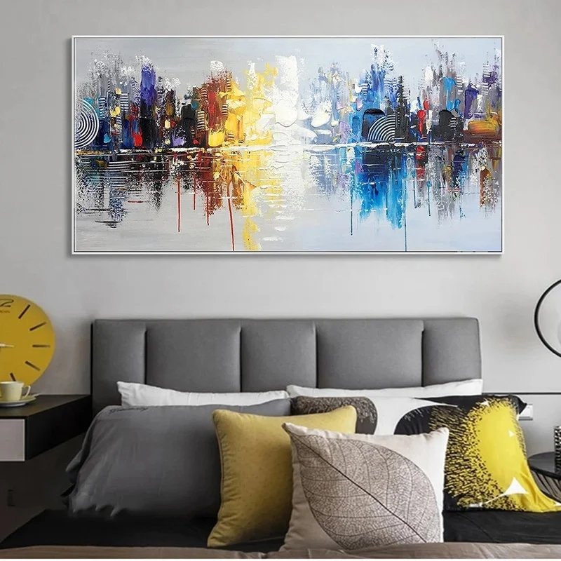 Абстрактный граффити настенное Искусство Ручная роспись городской пейзаж современные картины на холсте настенные картины для домашнего декора