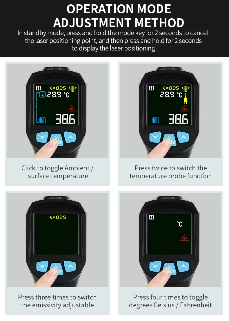 Примечание: Этот продукт не подходит для измерения температуры поверхности тела, лба, ребенка! (батарея не входит в комплект)