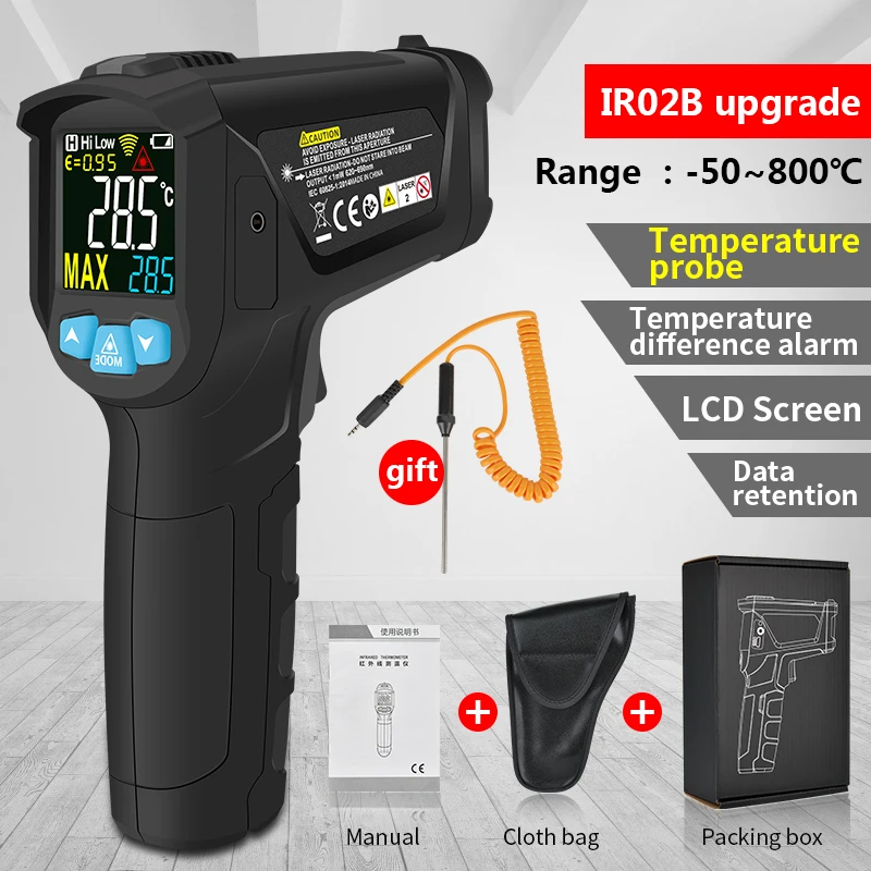 Бесконтактный промышленный термометр-50-800 градусов, цифровой термометр, измеритель влажности, инфракрасный термометр, гигрометр, пирометр