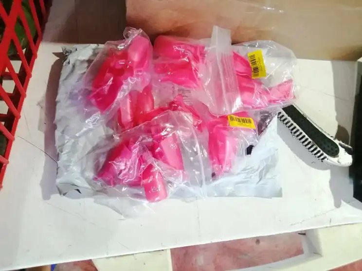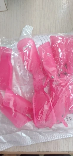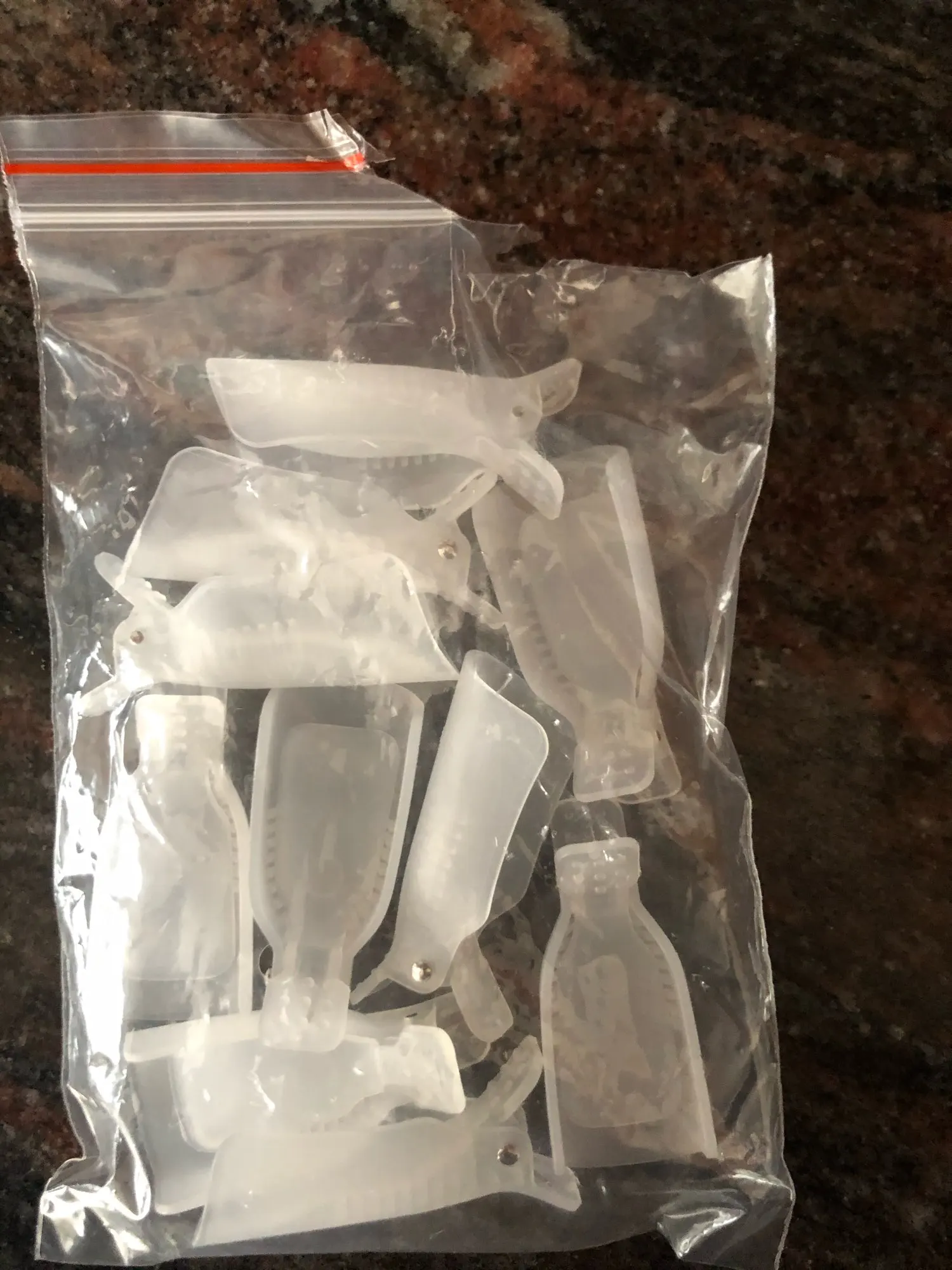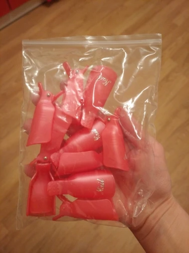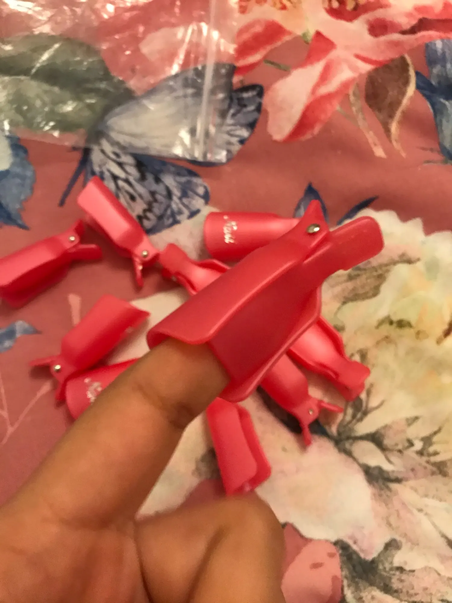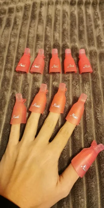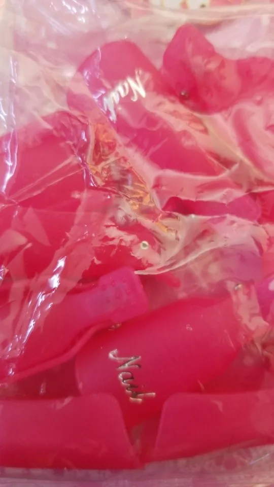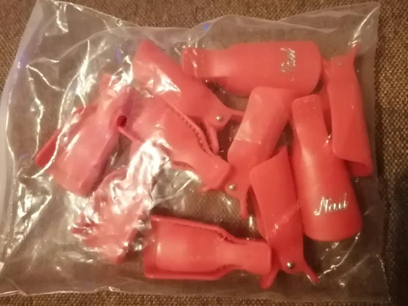 These nail clips are decent quality considering the price. I received them in two weeks. They came inside a plastic bag. I got them all (10 pieces). The only bad thing I can point out is that the print stamped in the clips was not well made (I inserted a pic of that chapped paint), and that makes it look kinda bad or "cheap" (and I mean, they are affordable so lol it was expected). But about the functionality of them, they work just well. They fit my fingers pretty well and they don't apply too much pressure to the finger nails, so they are not uncomfortable. A cotton ball will fit perfectly in these. Thank you.