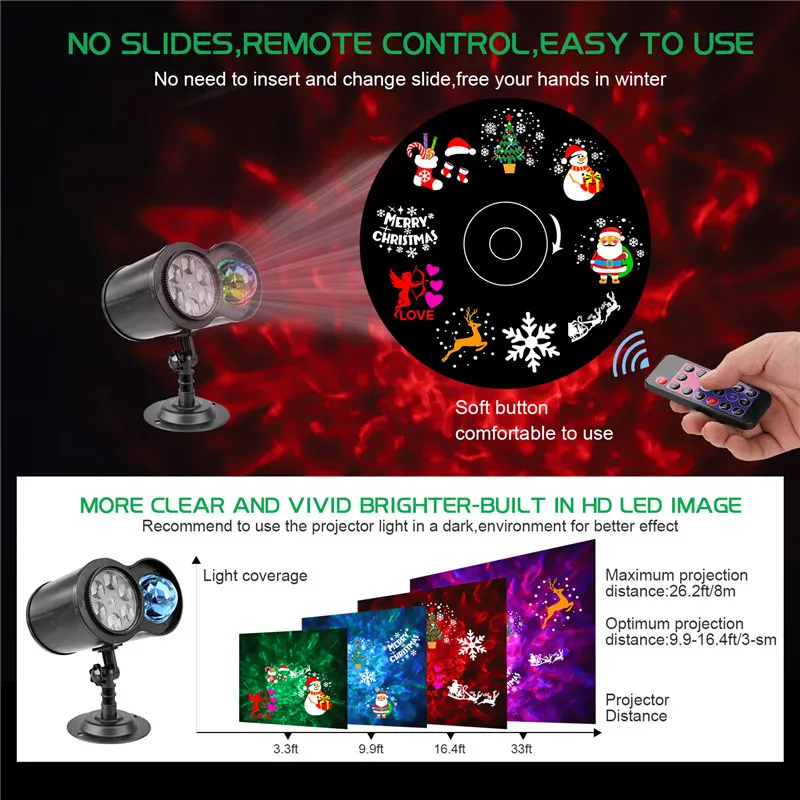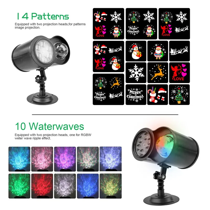 Наружные рождественские Проекционные Огни с 16 узорами, 2 в 1, свет...