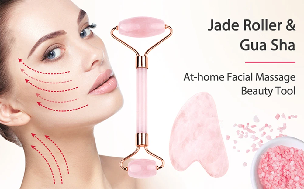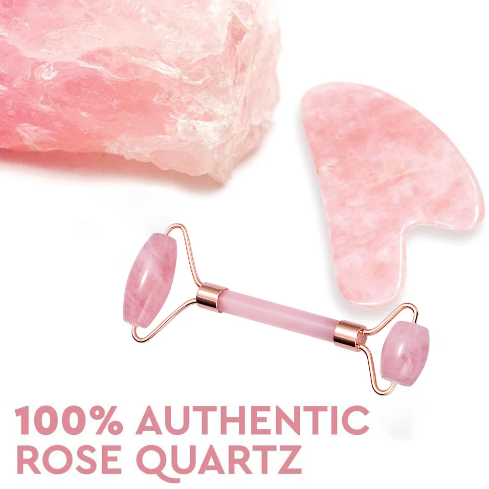 【 2 в 1 розовый КВАРЦЕВЫЙ нефритовый ролик и GUA SHA набор 】