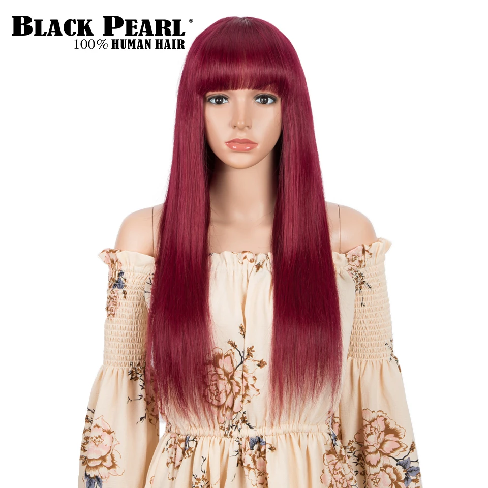 Парики из натуральных волос, прямые, 30 дюймов, с челкой, парики полностью машинного изготовления, цветные, блонд, бордовые парики, парик из бразильских волос Реми