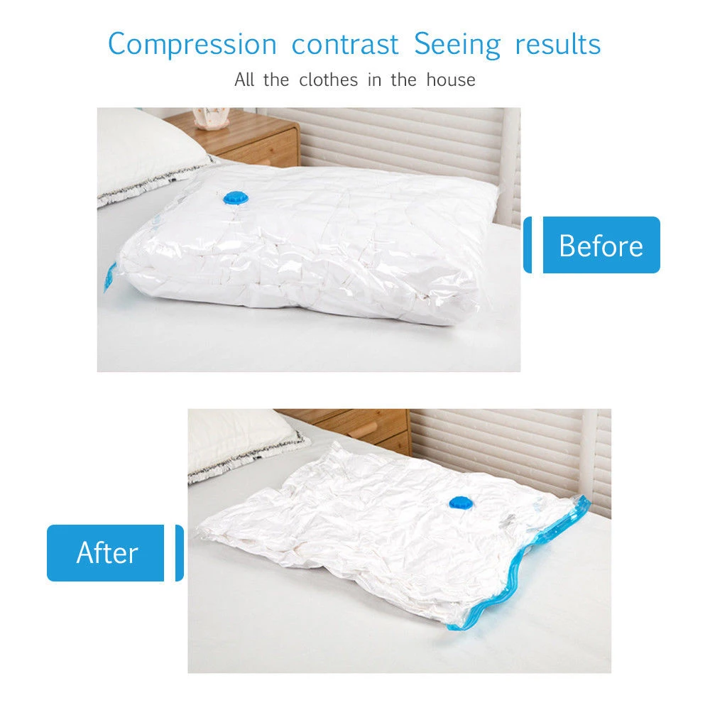 [Эффективное использование космоса] очень часто заканчивается, особенно для хранения одежды, вакуумных пакетов, чтобы помочь вам использовать пространство, которое у вас уже более эффективно, вы можете увеличить объем памяти на 77%【Хранение в шкафах и чехол для костюма 】 шкафы, которые используются для хранения одежды, не хватает места довольно быстро, именно в этом чехол, где вакуумный Хранитель пригодится. Они также отлично подходят для использования во время упаковки предметов во время путешествий. Одежда, как правило, занимает много места в чемодане, что требует использования многих чемоданов и сумок. Чтобы избежать большого количества сумок, вы можете сэкономить пространство вакуумных мешков, чтобы просто утроить количество одежды, которая может поместиться в чемодане【Держите одежду чистой и свежей 】 пыль, влага, плесень, насекомые, запахи и аллергены являются врагами хранящейся одежды, используя мешки, защищают вашу одежду от них, таким образом, поддержание их чистоты в течение времени, когда они хранятся