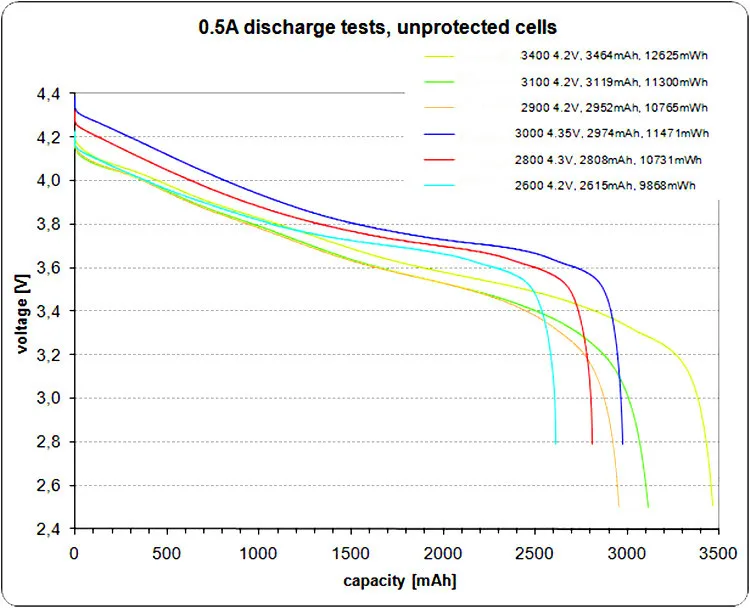 Реальная Номинальная мощность мА · ч намного ниже, чем указано поставщиком. Мы протестировали 5 случайно подобранных батарей после полной зарядки, мы разрядировали их электронными нагрузками. Результаты для всех 1019-1105 мАч!