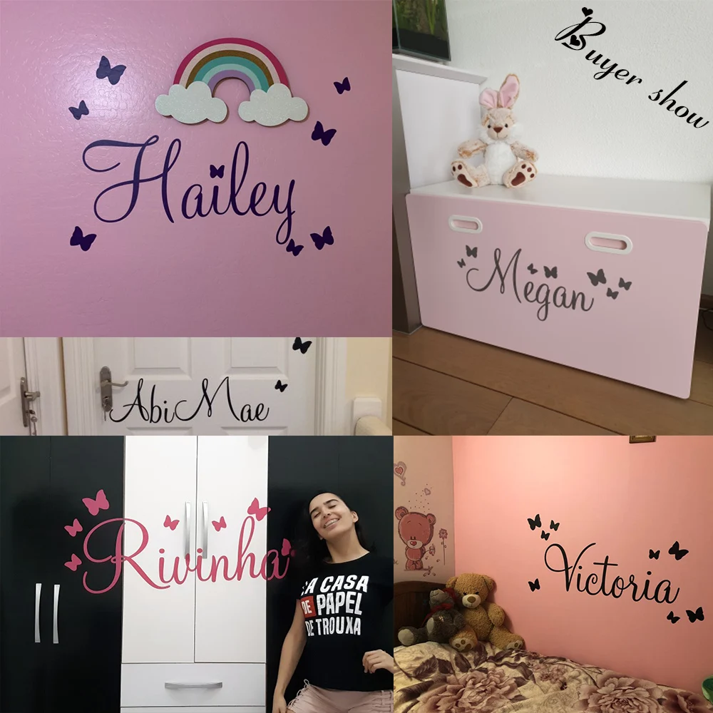 Настенные стикеры большого размера с именем по индивидуальному заказу, декоративные наклейки для спальни, декор для маленьких мальчиков и девочек