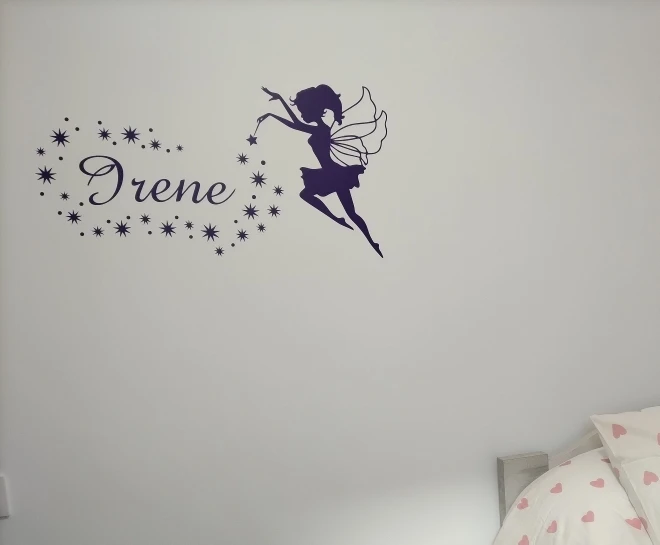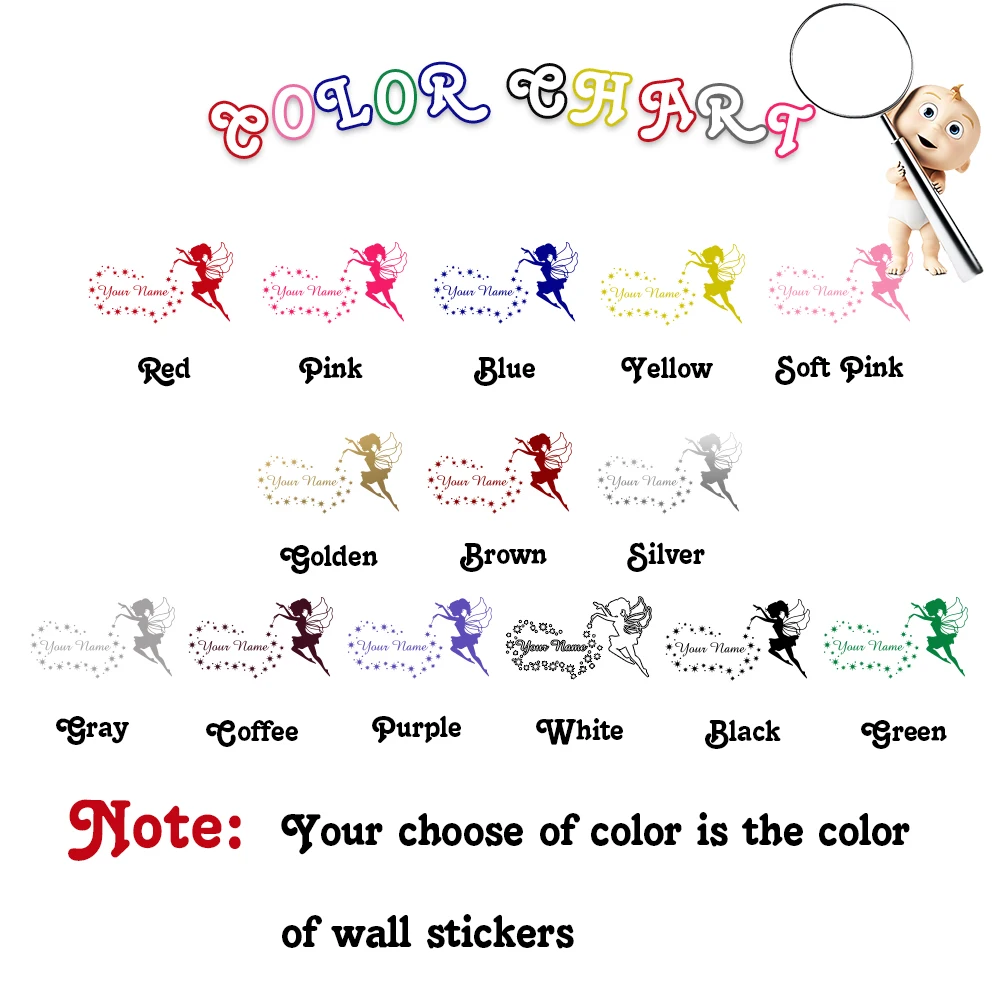 Фея Пользовательское Имя стены Стикеры Ангел настенные наклейки со звездами для девочек, Украшения в спальню детская комната обои наклейка фотообои Стикеры росписи