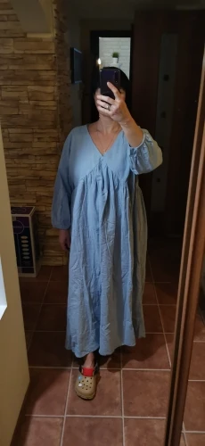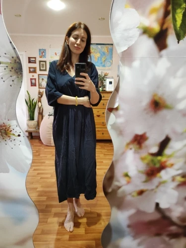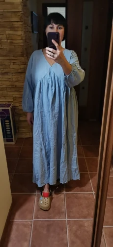 платье огонь! но цвет немного голубоватый (красивый) и капец как мнется. но рукава на резинке это супер, можно подтягивать до локтей и носить как 7/8. ношу 44-46, взяла L чтобы был оверсайз. М наверное тоже нормально бы сел