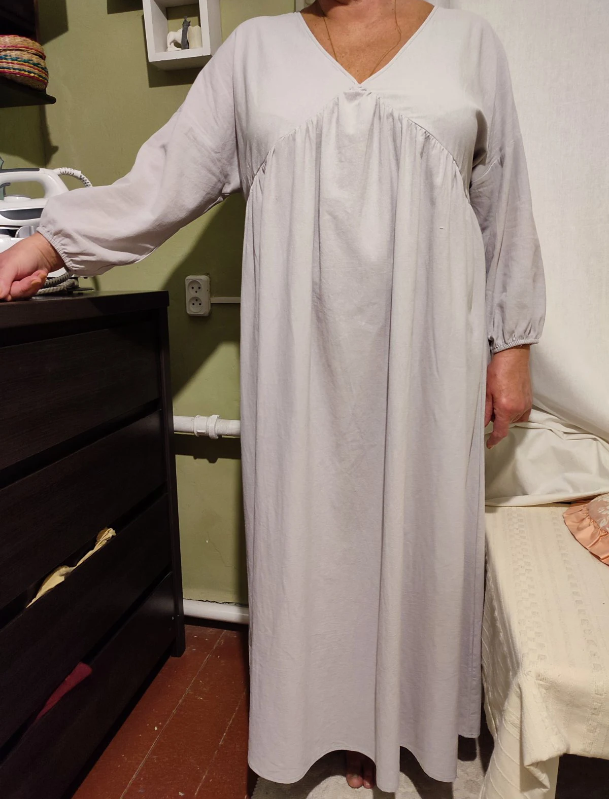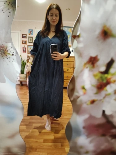 Хоть и синтетика но смотрится хорошо, платье понравилось, размер прям оверсайз