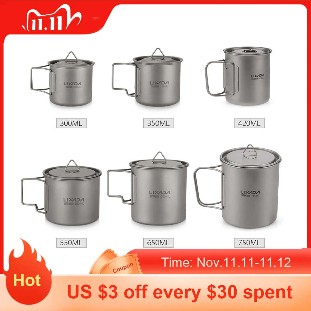 Портативная титановая чашка Lixada для пикника, походная кружка для воды со складной ручкой, 300350550650750 мл
