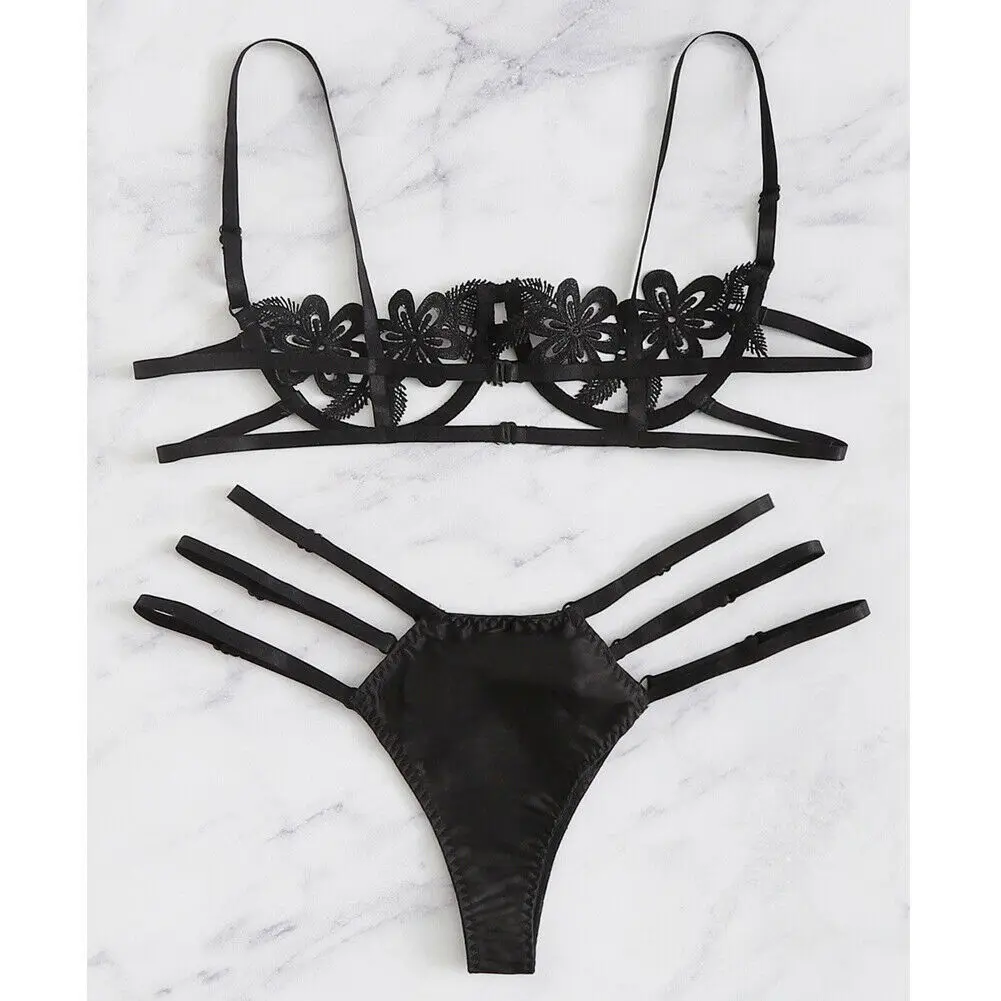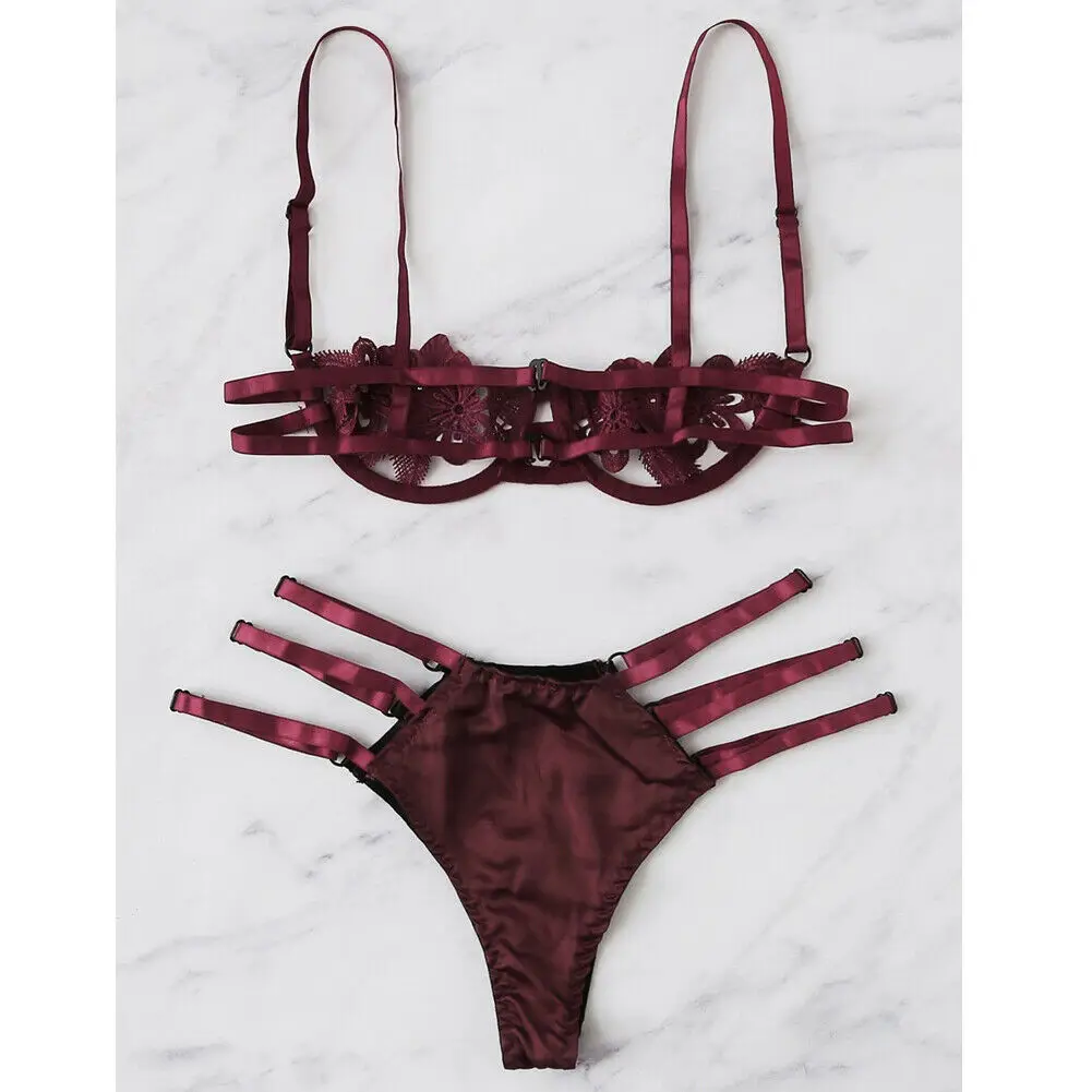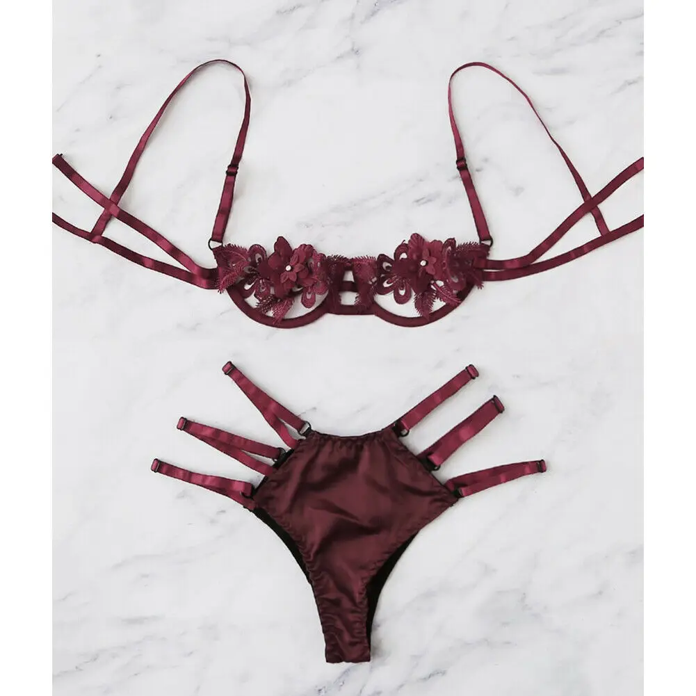 Женское сексуальное белье, кружевное атласное ажурное цветочное прозрачное кружевное белье, бюстгальтер, комплект нижнего белья, эротический сексуальный костюм