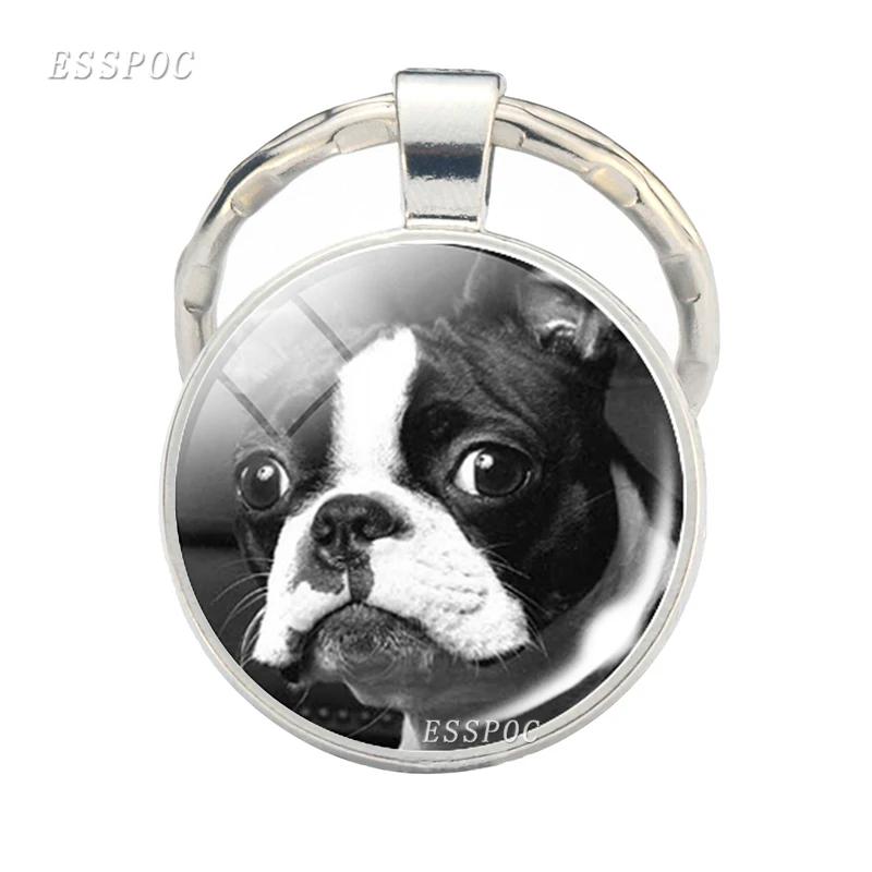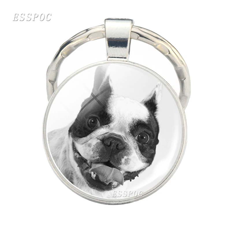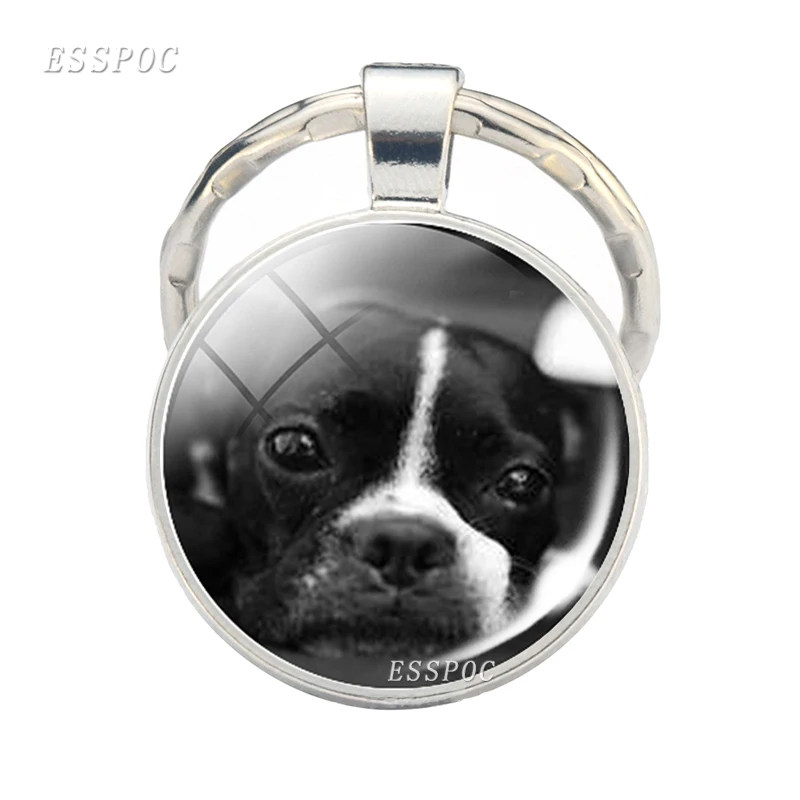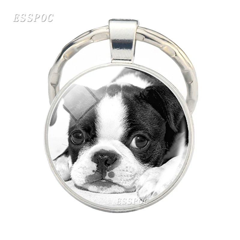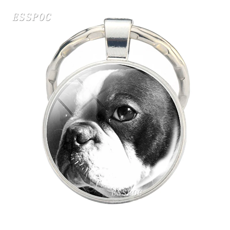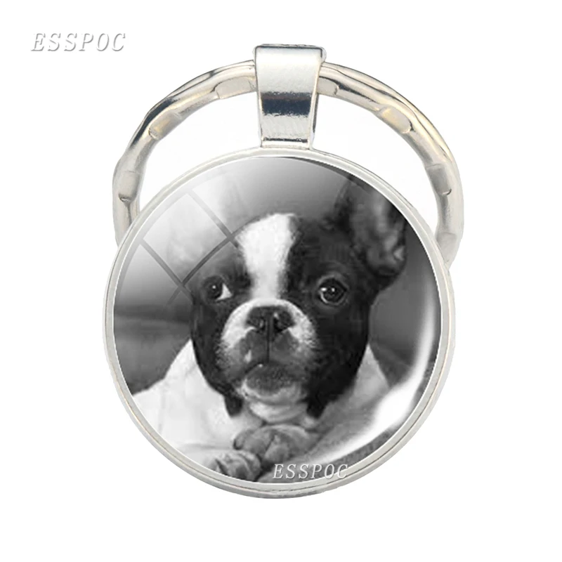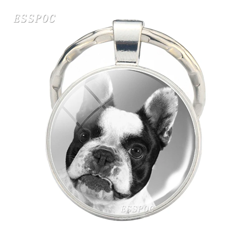 Черный и белый собака узор, брелок для ключей, бульдогов, кольцо для ключей Ретро животных собака брелок со стеклянным кабошоном ювелирные изделия кулон, брелки для ключей, подарки
