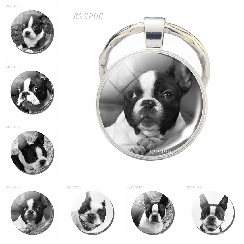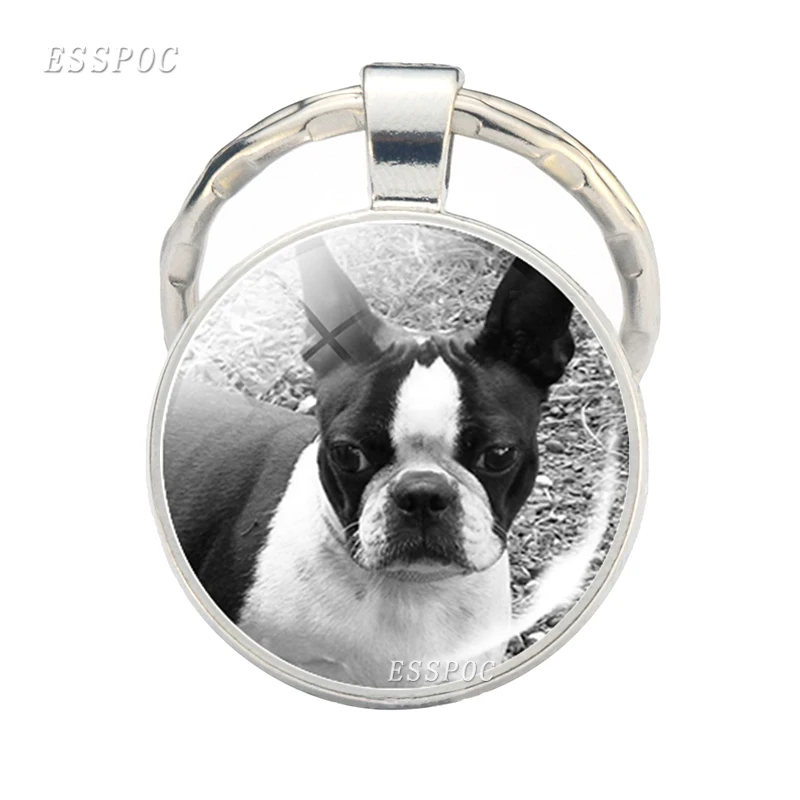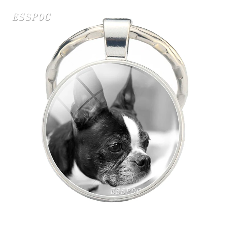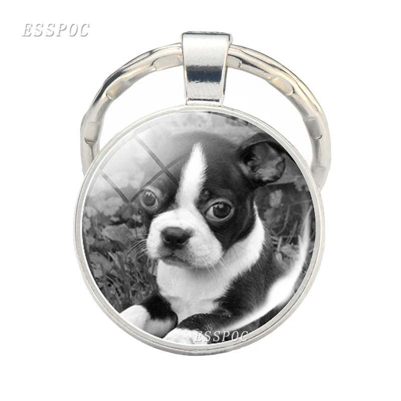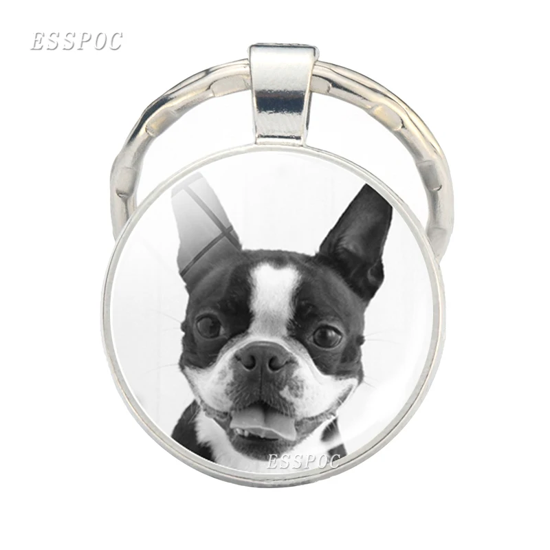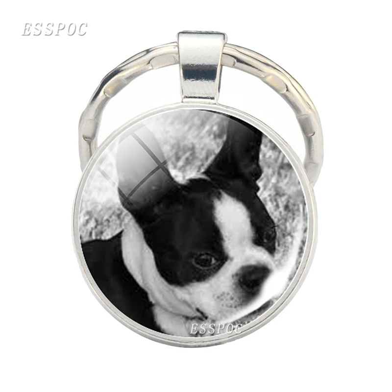 Черный и белый собака узор, брелок для ключей, бульдогов, кольцо для ключей Ретро животных собака брелок со стеклянным кабошоном ювелирные изделия кулон, брелки для ключей, подарки