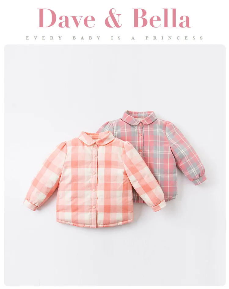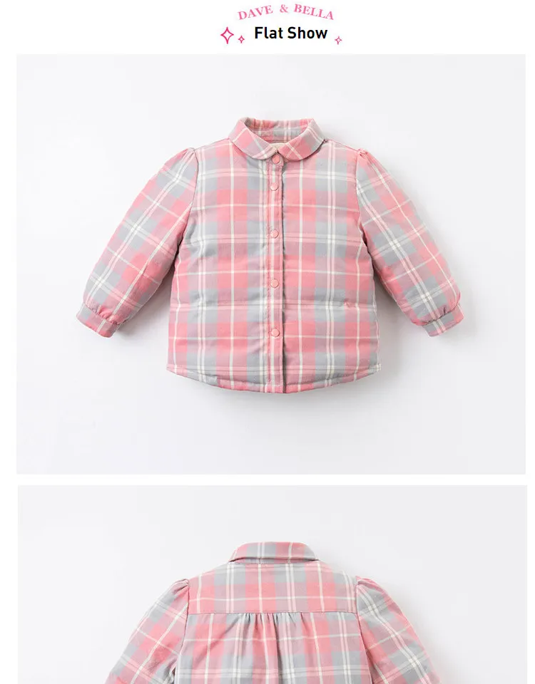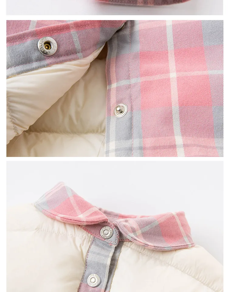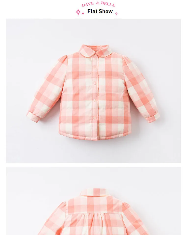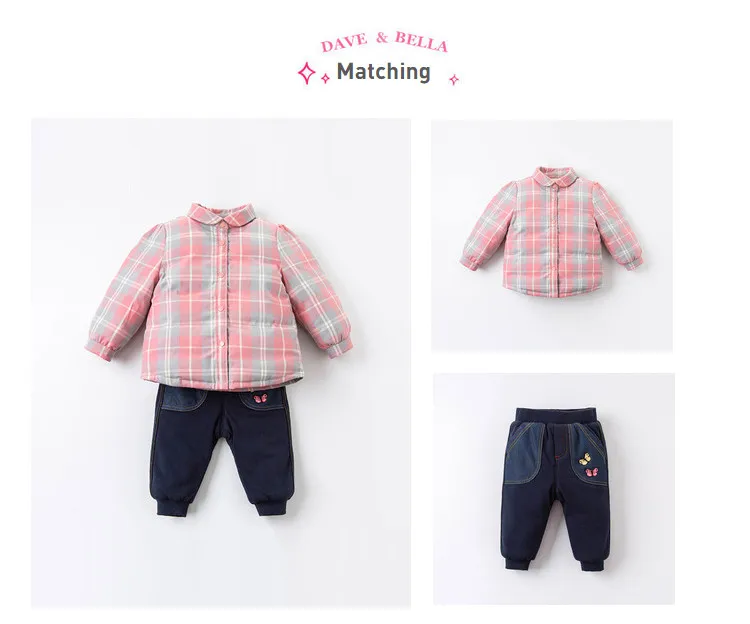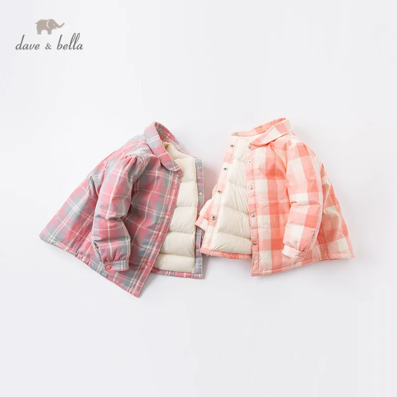 DB17311 dave bellaзимнее модное Двухслойное пуховое пальто в клетку для маленьких девочек Детская куртка с подкладкой из 90% белого утиного пуха