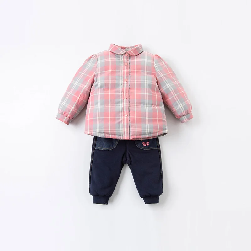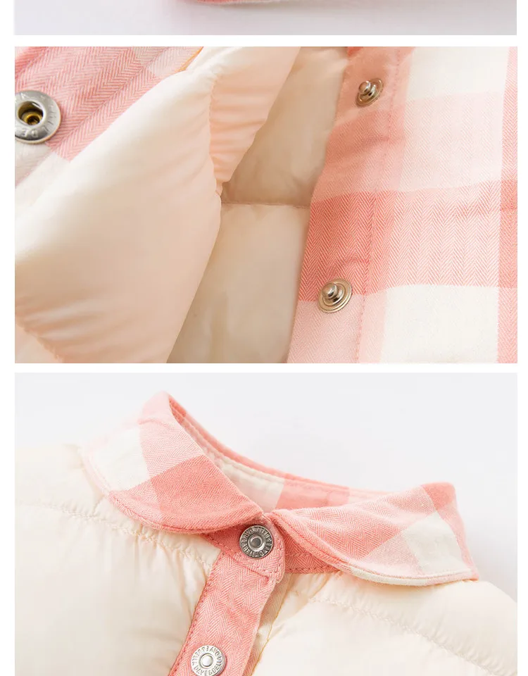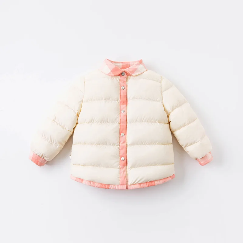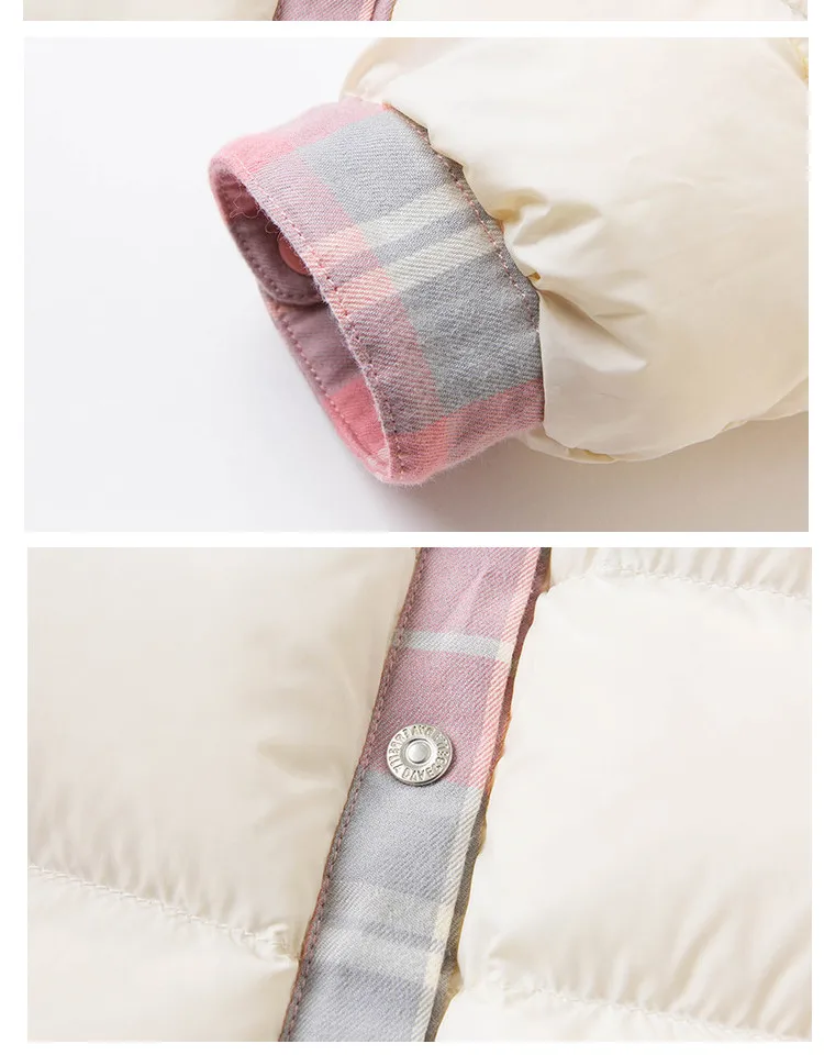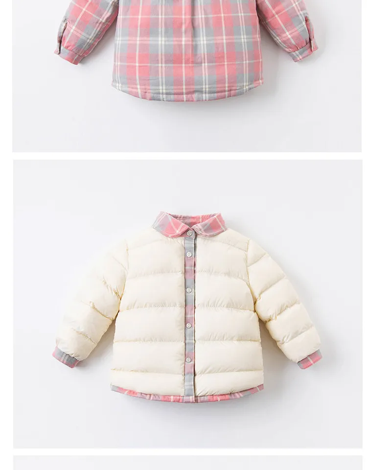 DB17311 dave bellaзимнее модное Двухслойное пуховое пальто в клетку для маленьких девочек Детская куртка с подкладкой из 90% белого утиного пуха