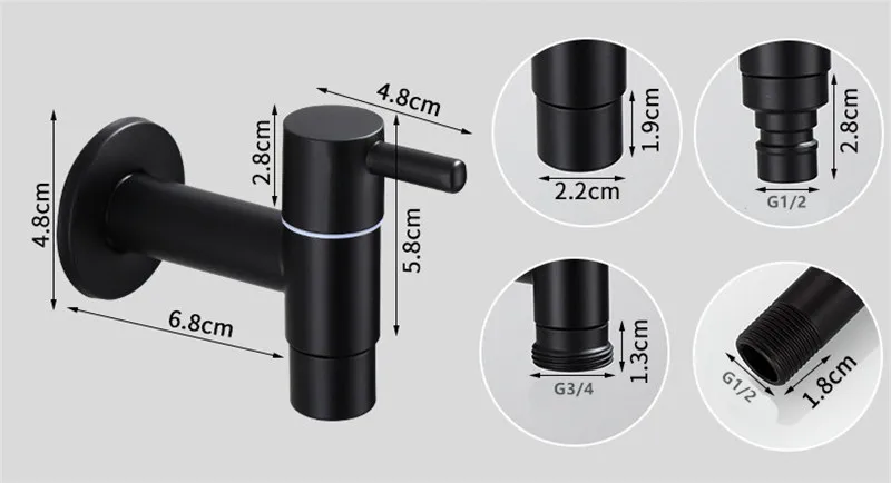 Смеситель с одним холодным краном для стиральной машины, черный смеситель для унитаза, садовый смеситель из нержавеющей стали, настенный смеситель для ванной комнаты