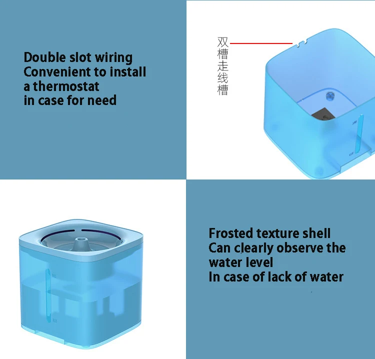 Перспективный дизайн уровня воды. 2Л большой емкости отлично подходит для собак, кошек, нескольких домашних животных. 2 режима потока воды, обеспечивая чистую проточную воду, делают ваших питомцев счастливее и здоровее.