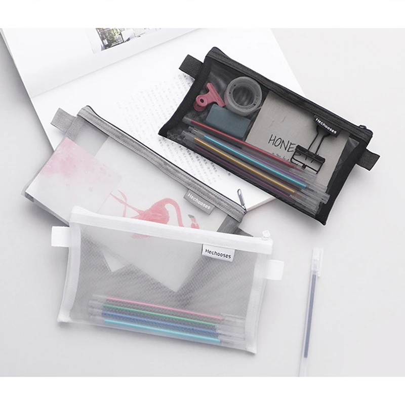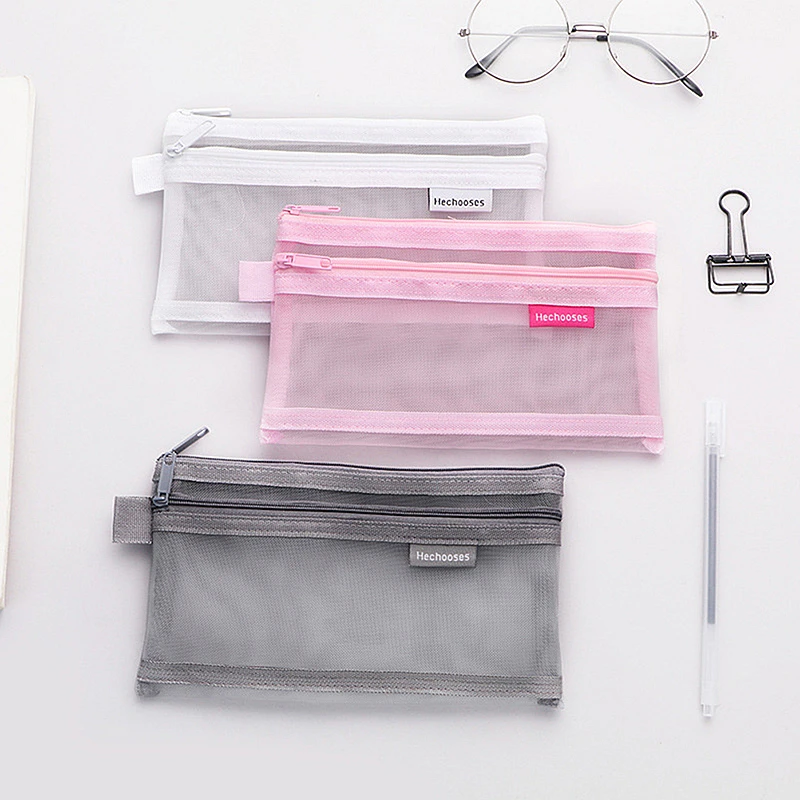 Пенал прозрачный с двойной сеткой, нейлоновый чехол для офиса и студентов, школьные принадлежности, пенал для хранения косметики и макияжа