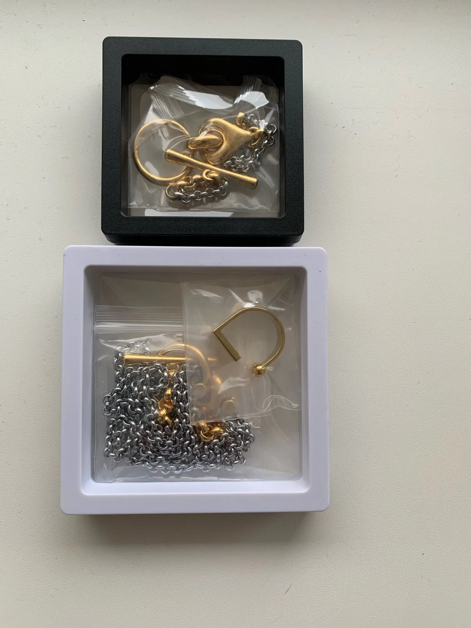 упаковка: в коробке + индивидуально каждое украшение в боксе с пленкой, качество отличное, золотые части очень жёлтые - надо привыкнуть