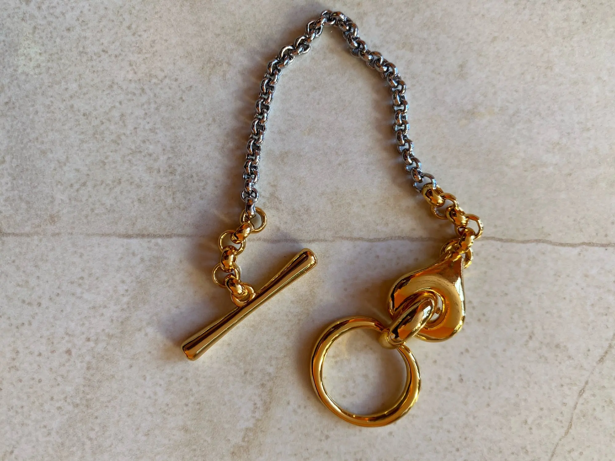 Шикарный браслет. За счёт застежки можно соединять с колье, они в одном стиле и удлиняют друг груга