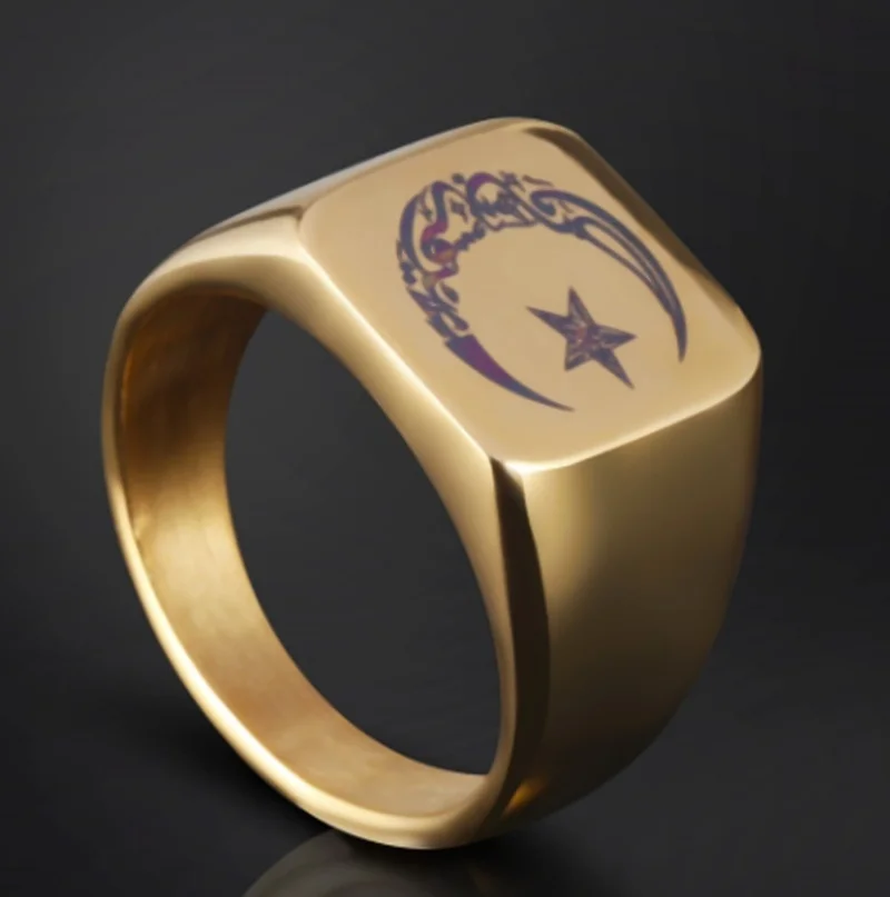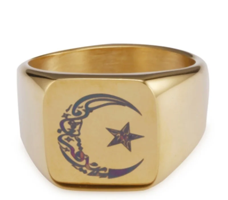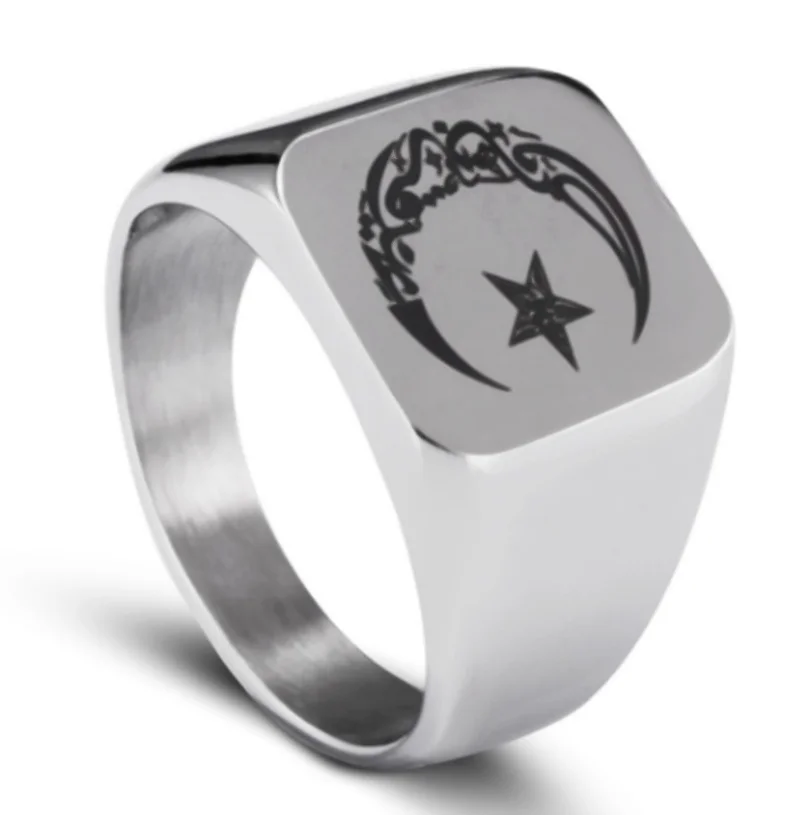 Новое мужское религиозное стильное мусульманское высококачественное металлическое кольцо с Луной и звездой