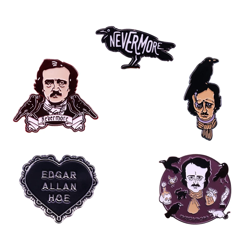 Большая поэт эмаль Эдгар Аллан Poe коллекция булавок Nevermore Ворон брошь в готическом стиле значки
