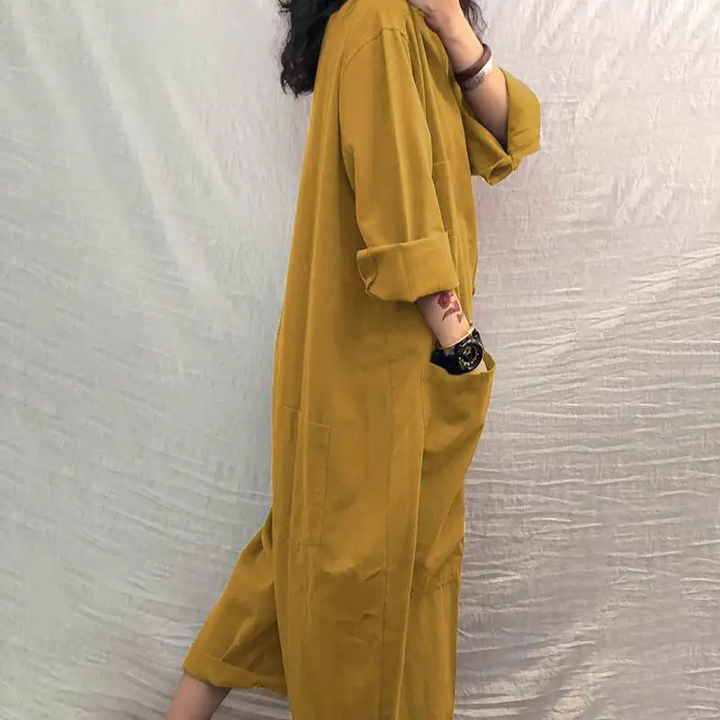 Комбинезон ZANZEA женский с лацканами и длинным рукавом, уличный Модный повседневный свободный однотонный ромпер с карманами, на осень