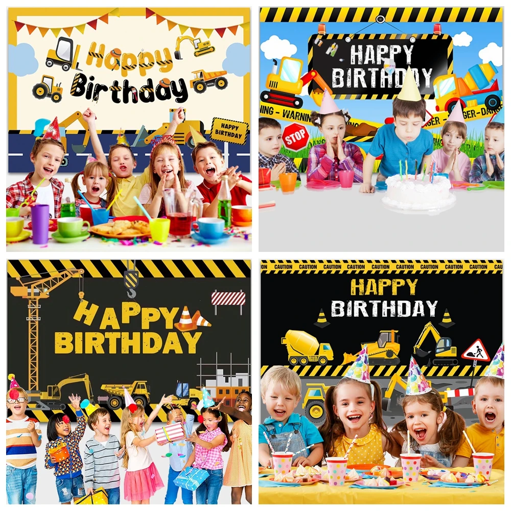 Фон для фотосъемки с изображением зоны строительства экскаватора грузовика крана детского душа