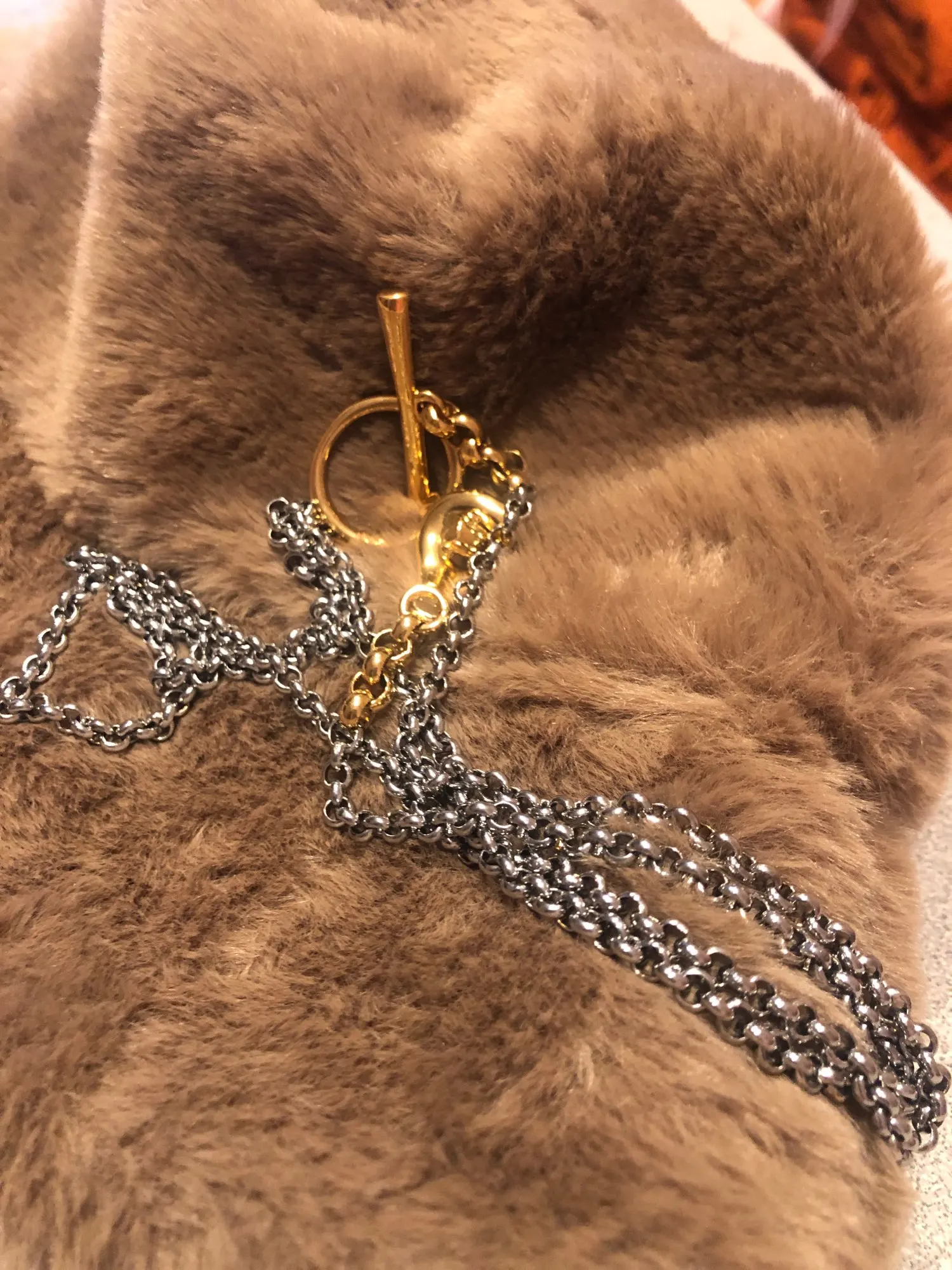 Шикарная цепь!!! Тяжелая, отлично сделана и эффектна в носке. Можно обернуть дважды, можно распустить.