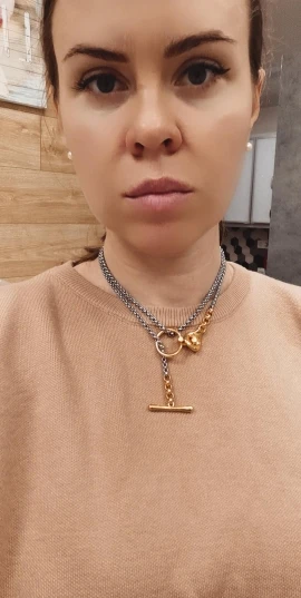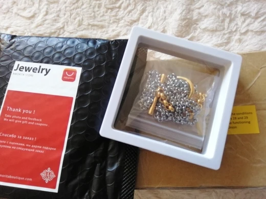 Ну так... Восторга, который испытывает девушка, рекламирующая это колье в инста, я не испытала. Выполнено аккуратно. Серебристый цвет хороший, а вот золотой слишком интенсивный, яркий. Так что думаю, спокойно можно заменить на более дешевый аналог. Доставка до пункта самовывоза в Москве очень быстрая - 12 дней. Колье идеально упаковано, в коробочку. Спасибо продавцу, магазину, всем.