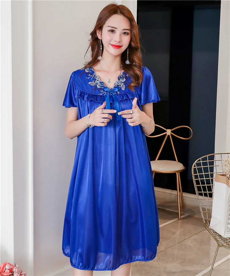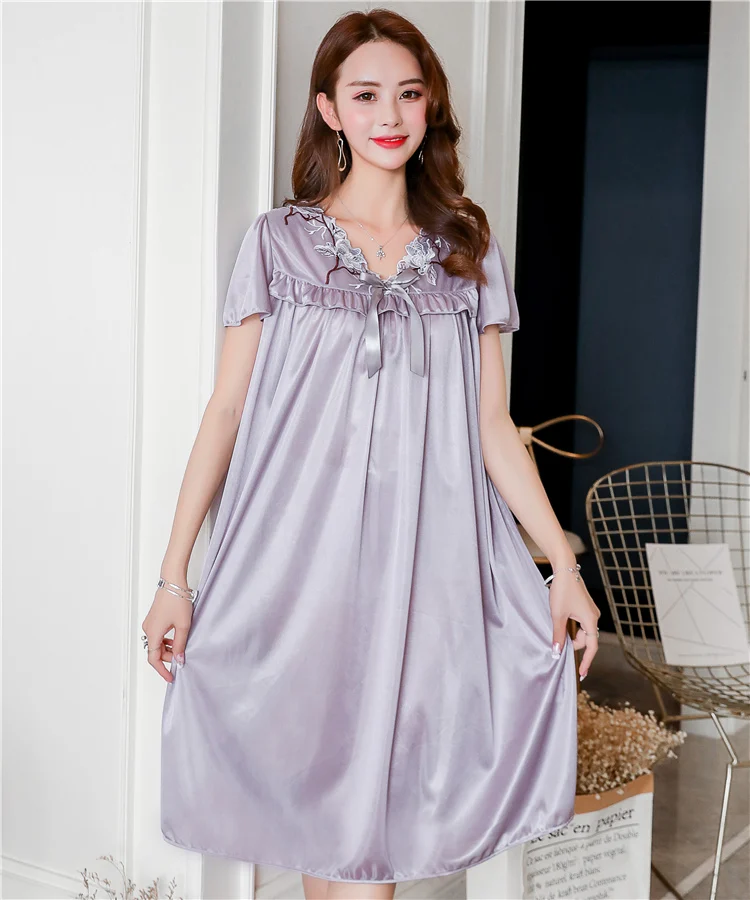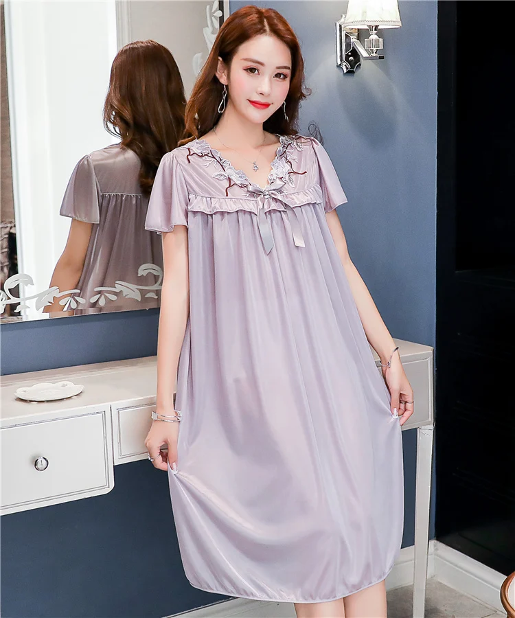 Рубашка ночная женская с коротким рукавом и V-образным вырезом, цве...