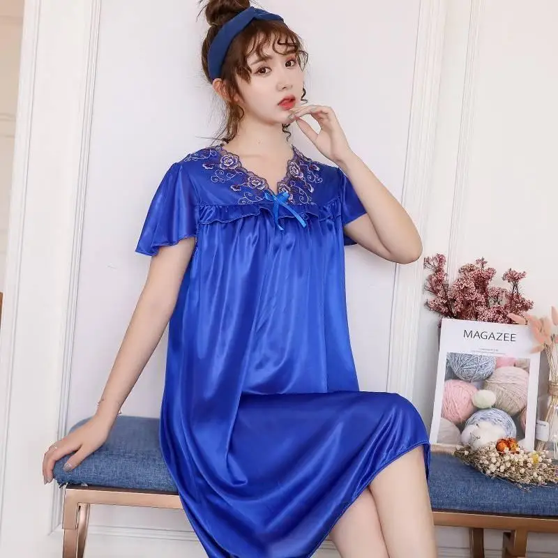 2021 Летняя шелковая ночная рубашка, женская одежда для сна, Женска...