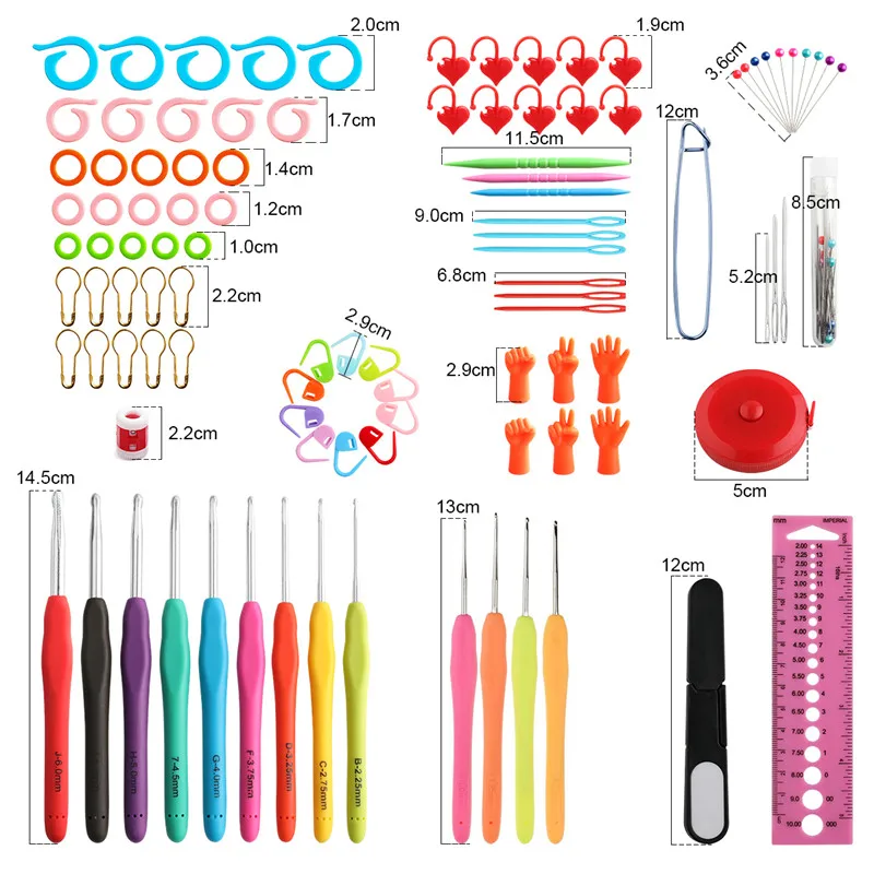 Набор спиц для вязания, 100 шт., крючки для вязания, спицы для руко...