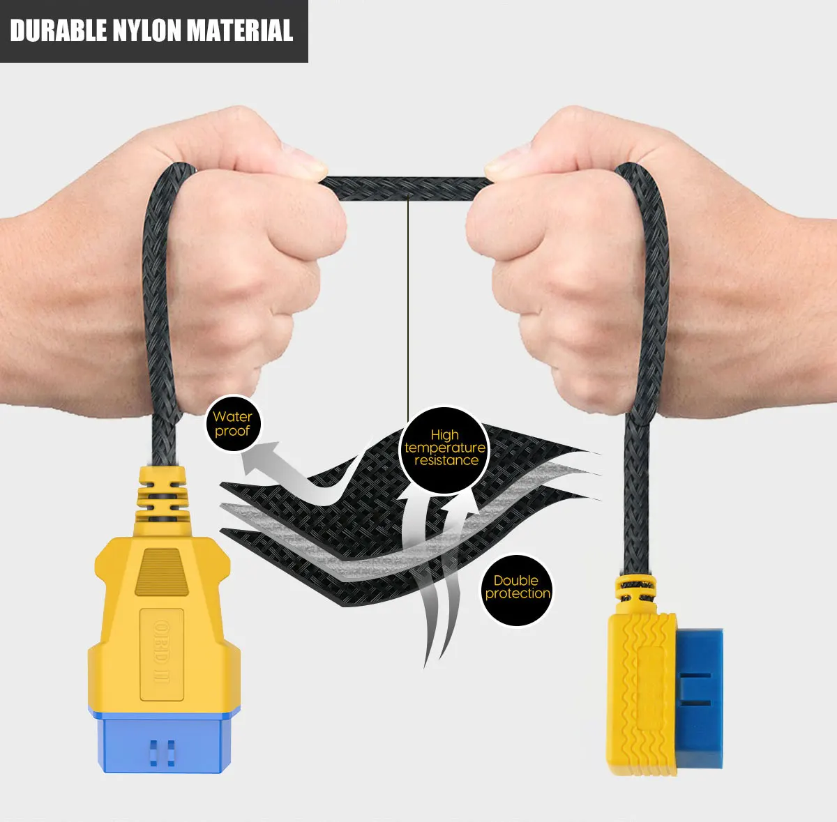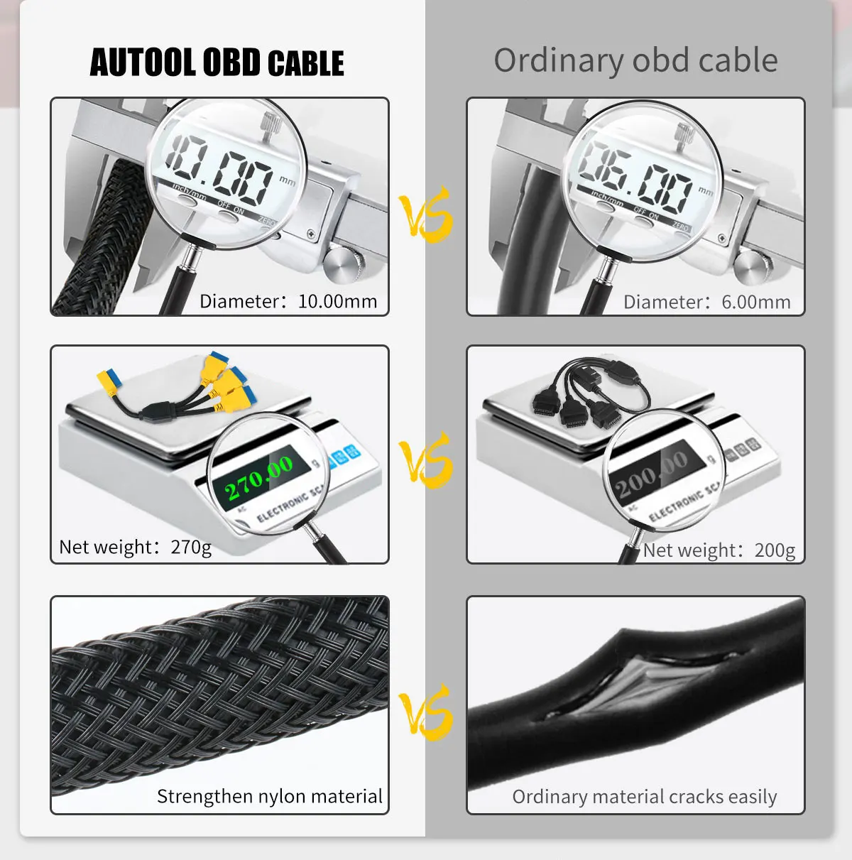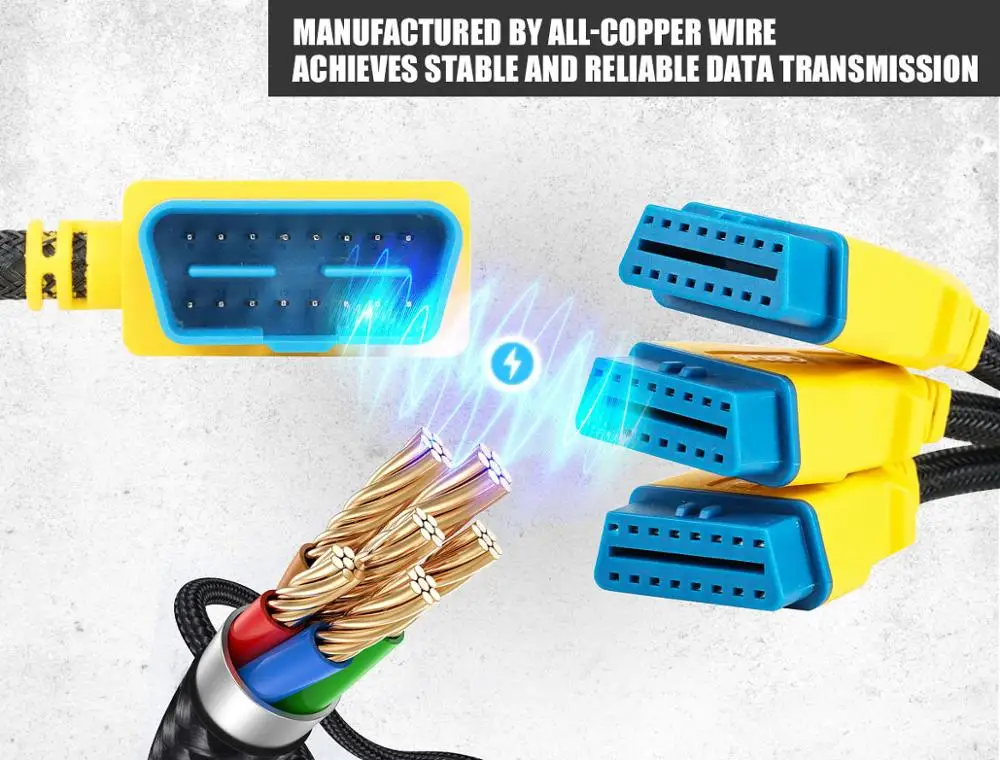 Для AUTOOL OBD модернизированной серии кабелей мы применяем Полностью Автоматическую технологию, мы используем высококачественный сердечник из чистой меди и пластик с TPE материалами, которые также покрывают защитные нейлоновые плетеные рукава. Для обеспечения подключения кабеля более чем в 10000 раз требуется 8 этапов проверки от литья до литья.AUTOOL 35 см от 1 до 3 разветвитель для автомобиля OBD2 II 16PIN Гибкий удлинитель для мужчин и женщин с нейлоновым и противоскользящим материалом, водонепроницаемость, стабильное сопротивление без деформации, дает вам идеальный опыт покупок.