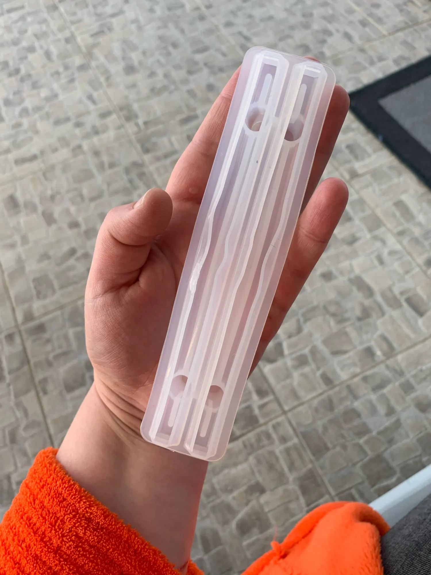 Продукт сложен и теперь силикон Согнут... Нехорошая упаковка. Они должны были упаковать его по длине и не сгибаться.