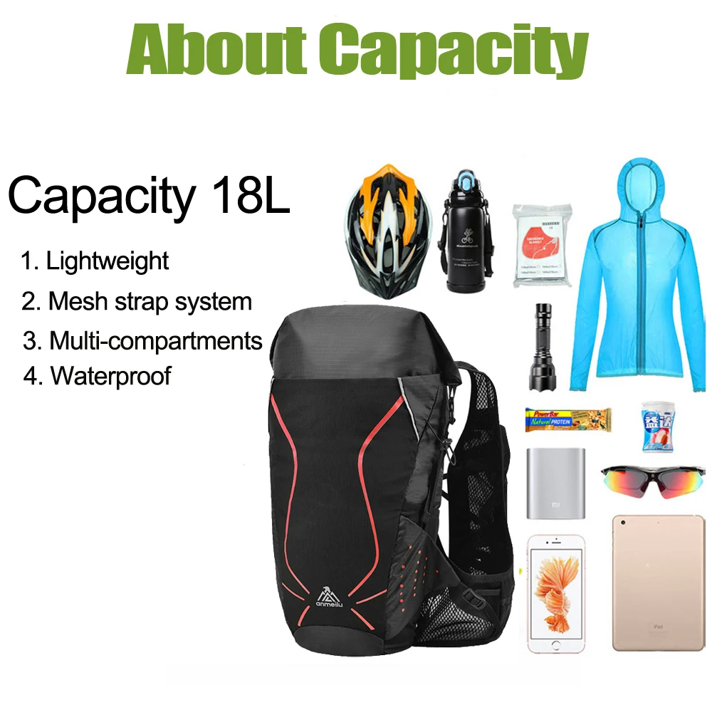 Рюкзак для бега на 18 л, уличные спортивные сумки, легкий увлажняющий ранец, походный марафон с водяным пузырьком на 2 л