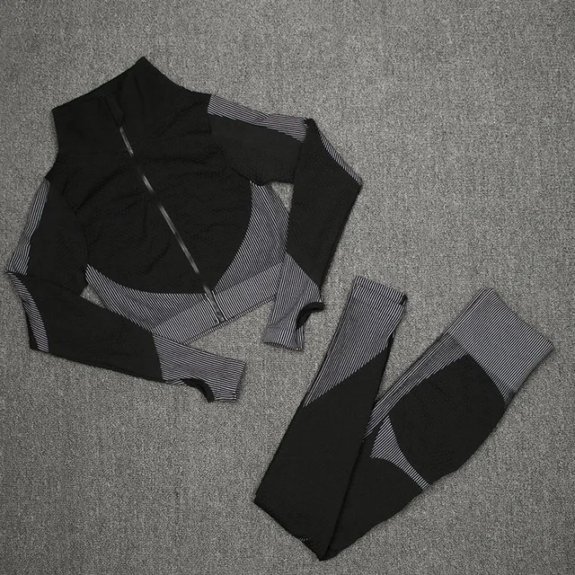 Комплект спортивный женский бесшовный для фитнеса, облегающий топ с высокой талией, пуш-ап и леггинсы, костюм с длинным рукавом, на молнии