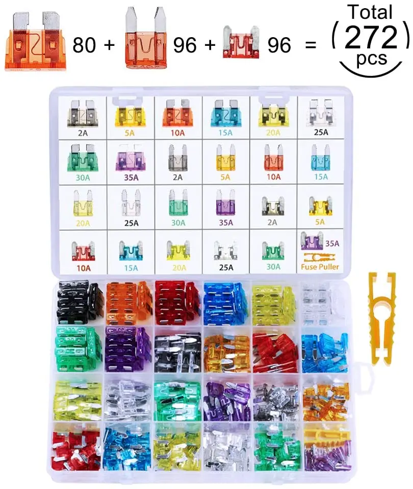 Набор автомобильных предохранителей 2 А, 3 А, 5 А, 10 А, 15 А, 20 А, 25 А, 30 А, 35 А, 485 шт., 272 шт.