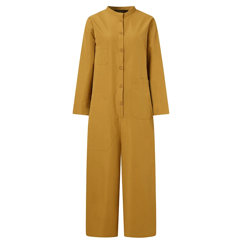 Комбинезон ZANZEA женский с отложным воротником, повседневный свободный однотонный ромпер с длинным рукавом, размера плюс, 5XL, осень