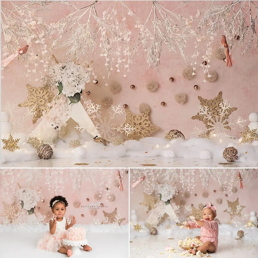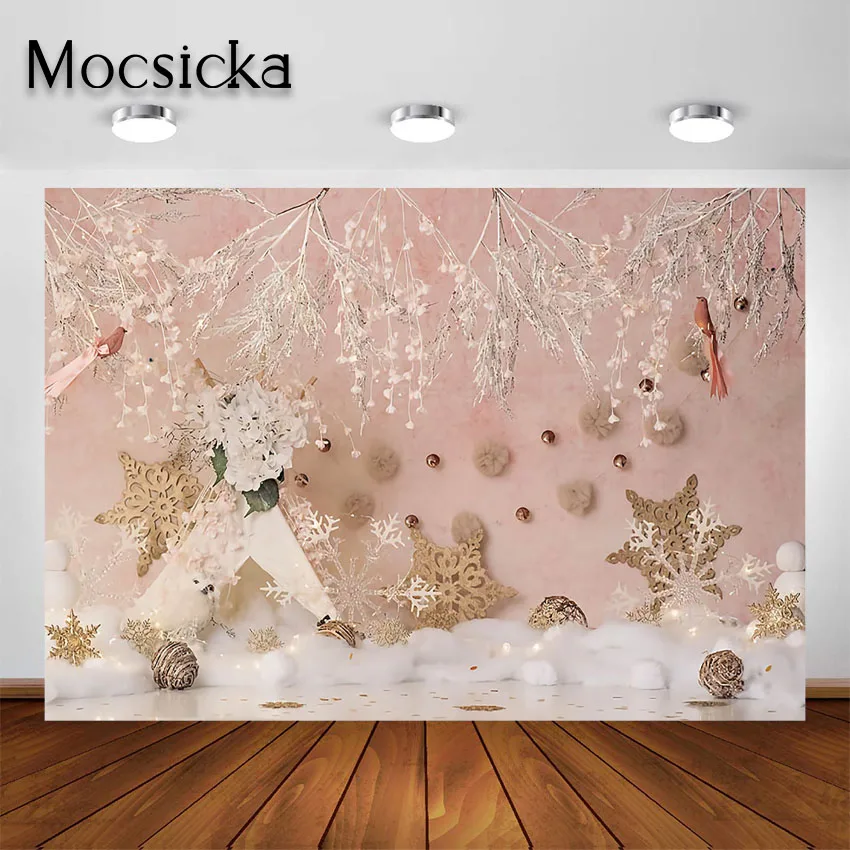 Mocsicka Новорожденные рождественские фотографии фон розовая стена зима снежинка девочка фон для фотосессии День рождения украшения