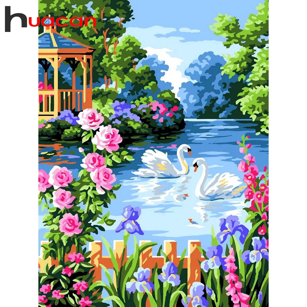 Huacan алмазная вышивка лебеди вышивание крестиком украшения для дома алмазная мозаика цветы подарок ручной работы