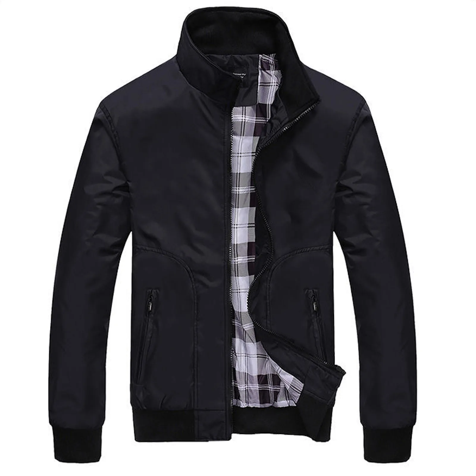 Мужская осенне-зимняя повседневная однотонная кашемировая утепленная куртка на молнии