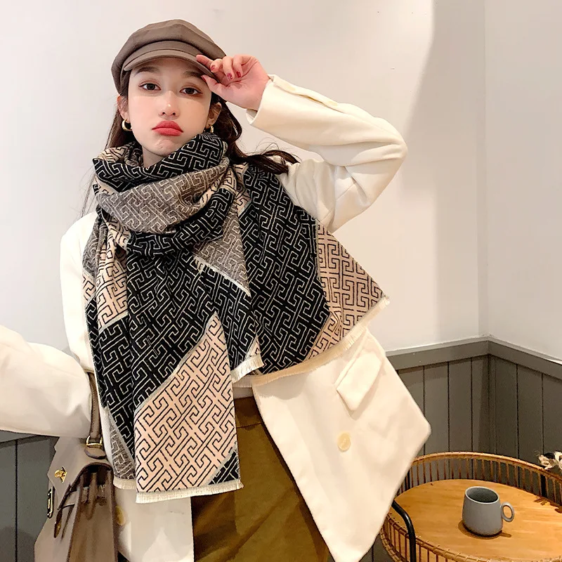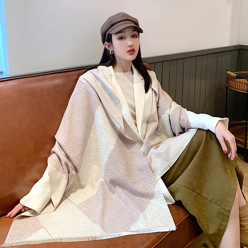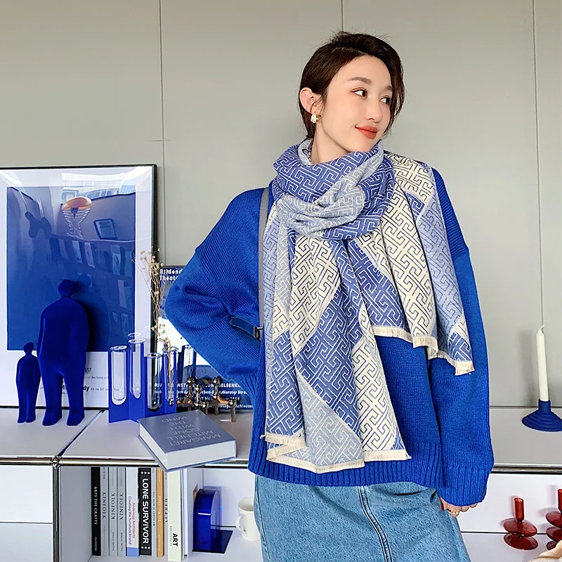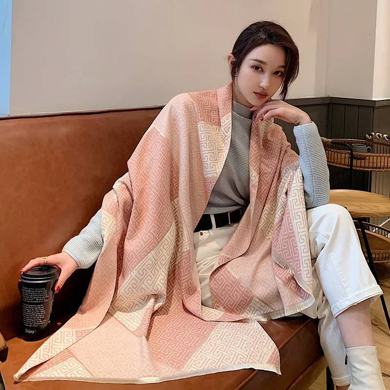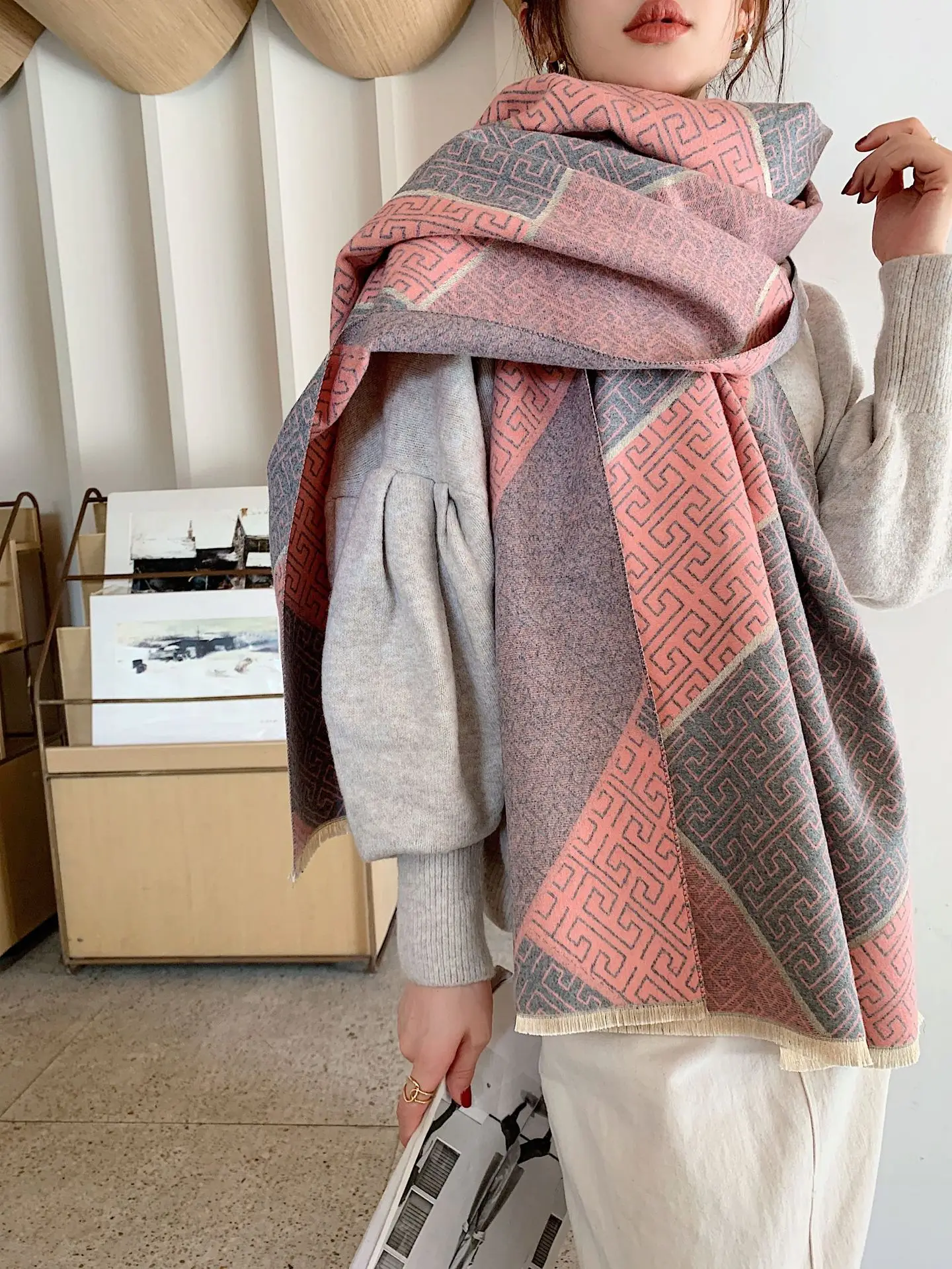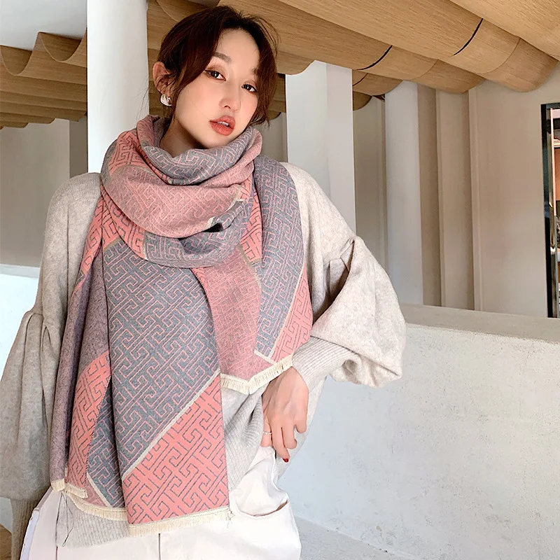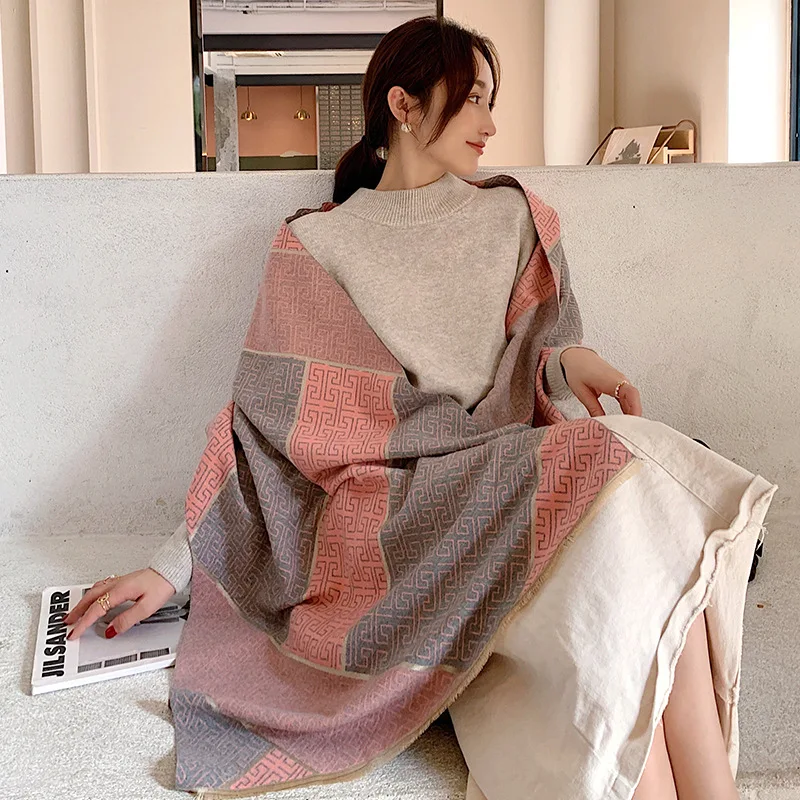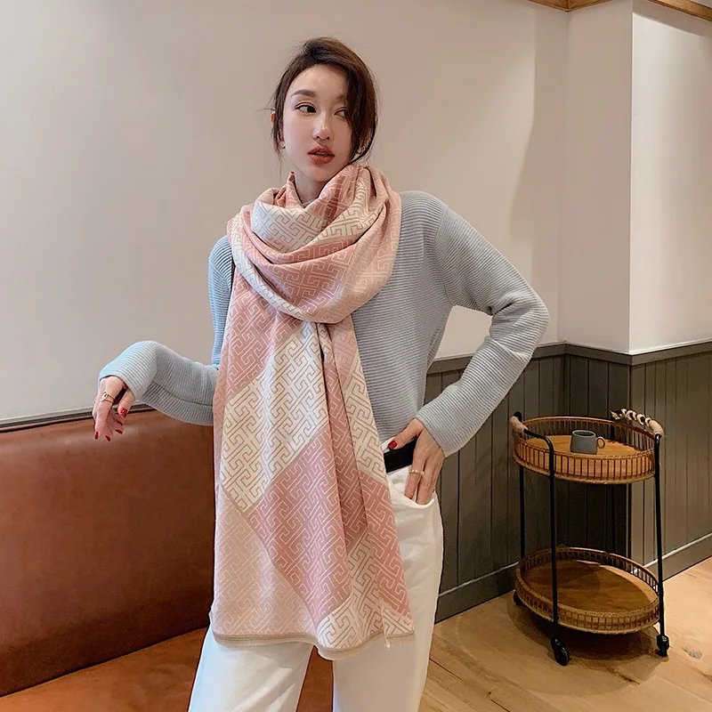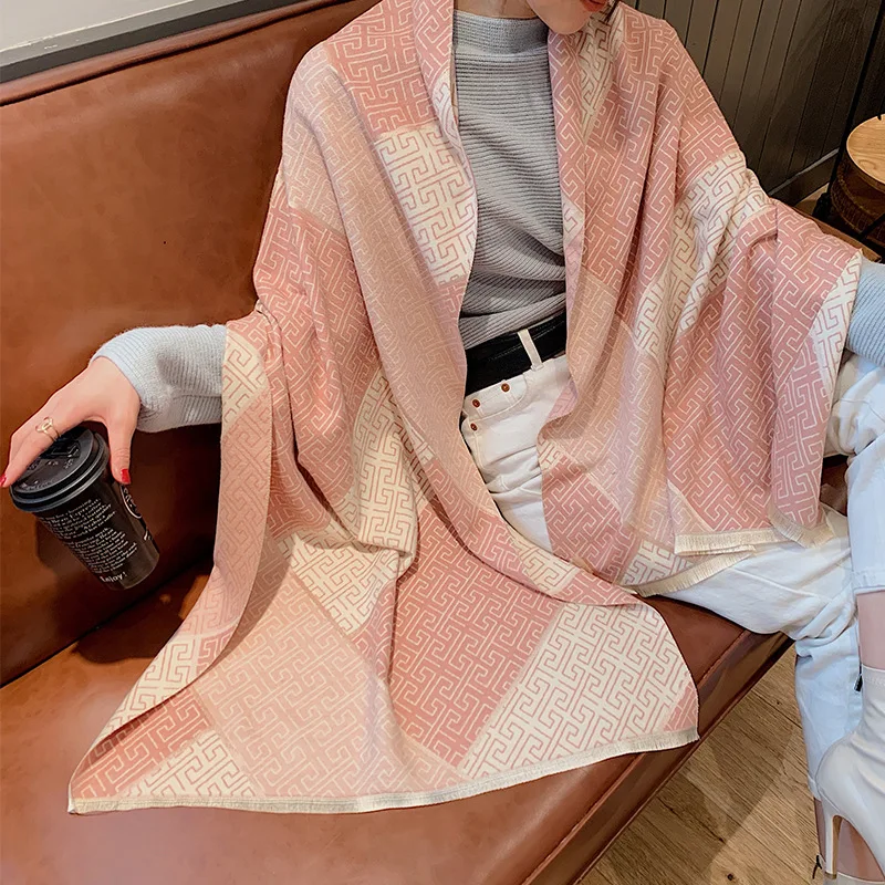 Шарф KOI LEAPING, зимний, женский, двухсторонний, теплый, кашемировый